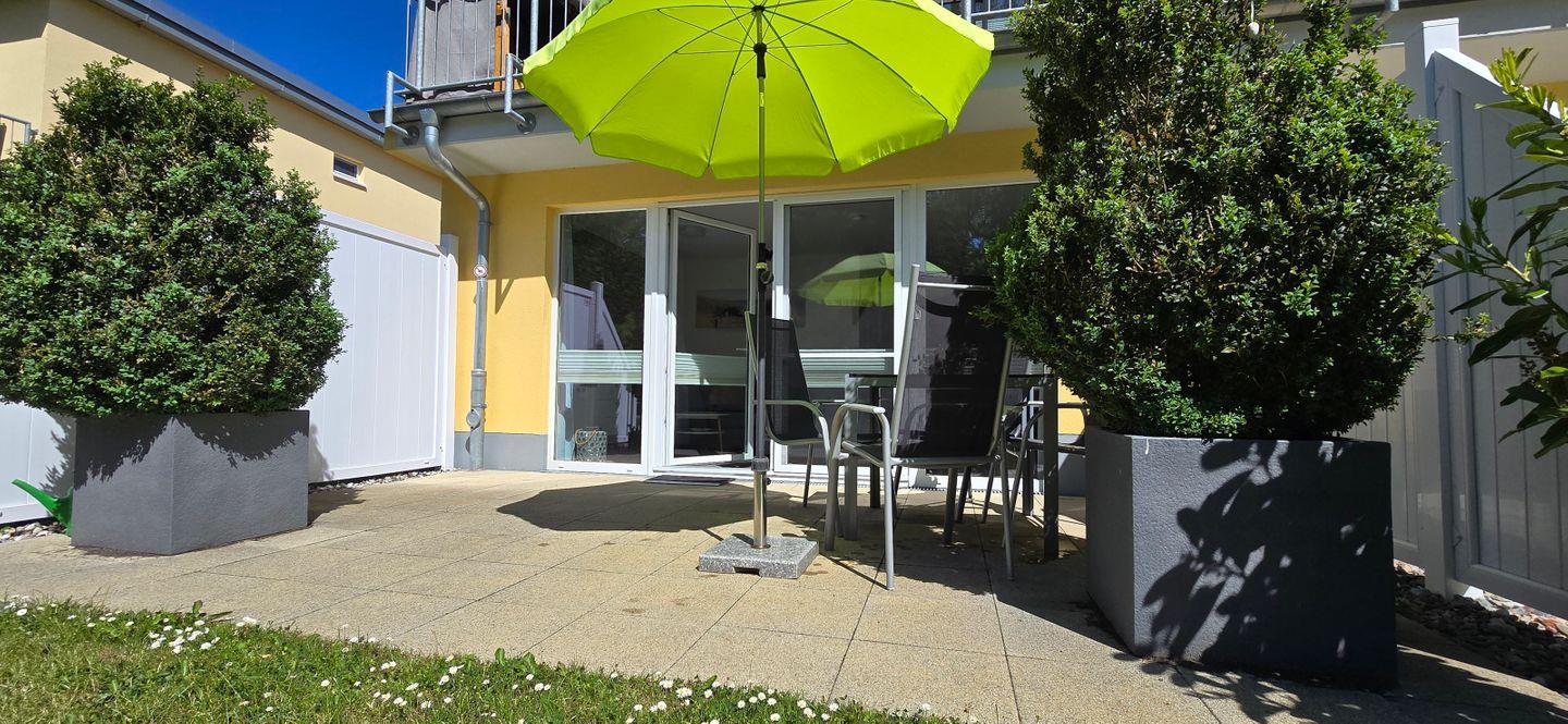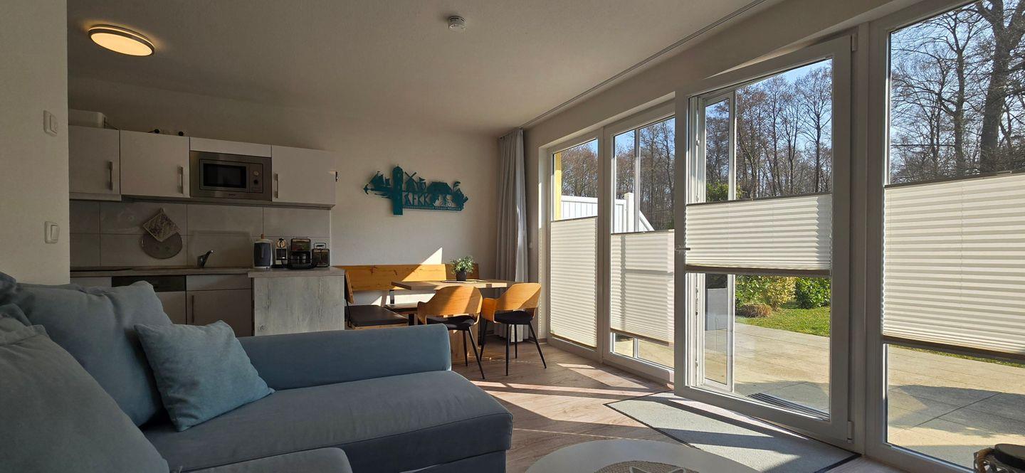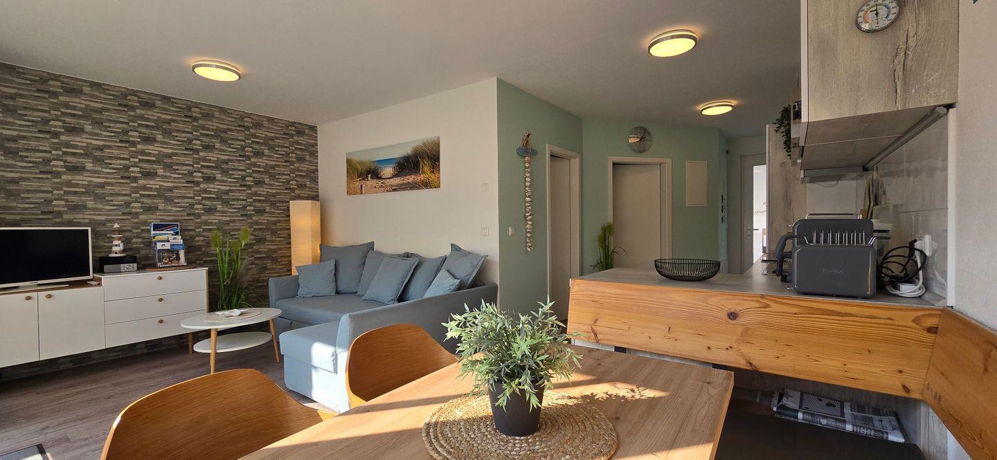 Moderne 2-Zimmer-Ferienwohnung mit Terrasse, WLAN, Fahrrädern und Privatparkplatz in Graal-Müritz, nur 1,8 km vom Ostseestrand entfernt.