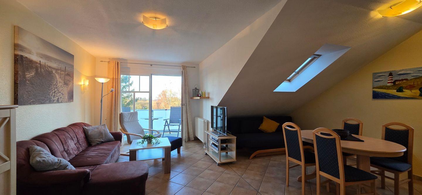 Moderne Ferienwohnung B1 im Dachgeschoss in Graal-Müritz mit Balkon und Meerblick, ideal für erholsame Tage an der Ostsee.