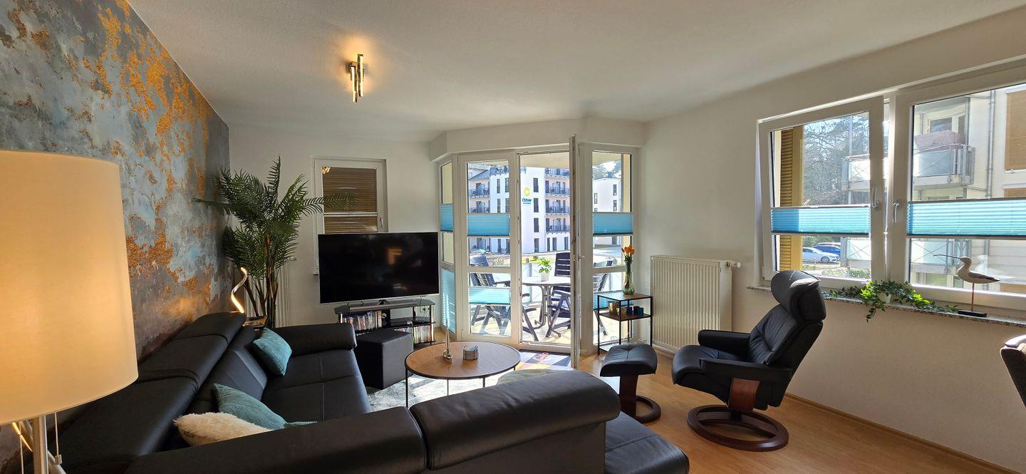 Komfortable Ferienwohnung in Graal-Müritz nahe Ostseestrand und Seebrücke mit Balkon und Privatparkplatz.
