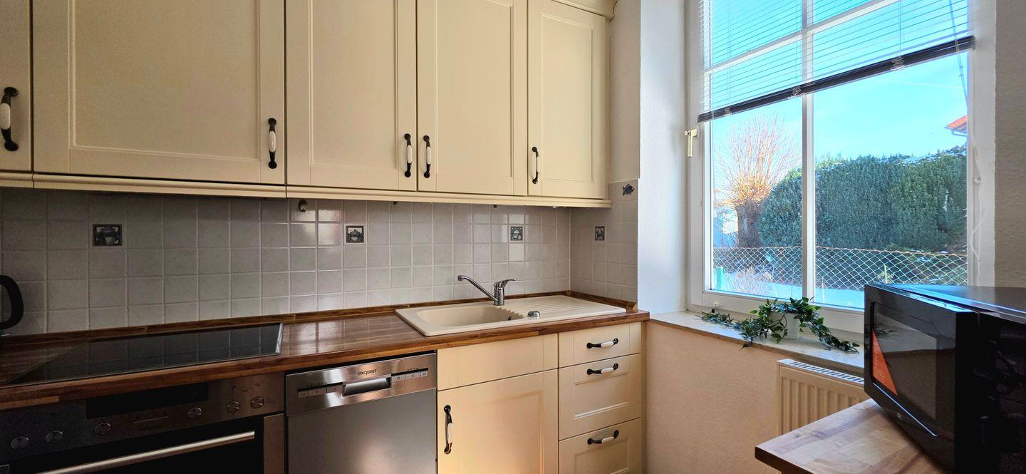 - Küche mit Geschirrspüler, Herd (2-Platten-Kochfeld), Backofen, Mikrowelle, Kühlschrank mit Gefrierteil, Kaffeemaschine, Wasserkocher, Toaster, Geschirr und Besteck sind ausreichend vorhanden