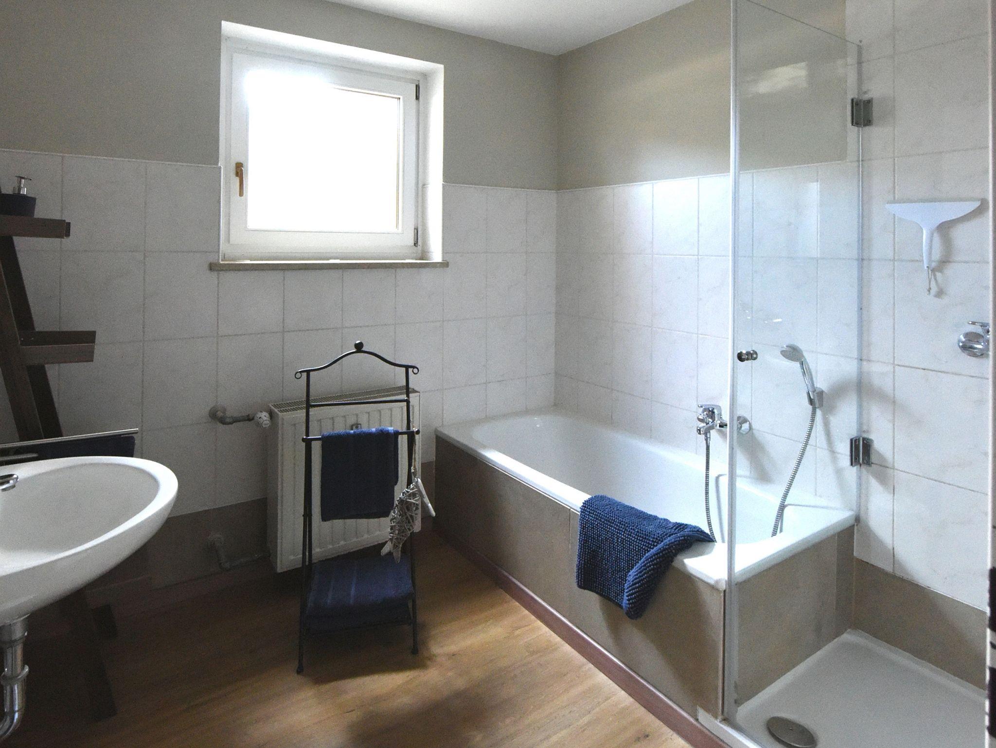 Herzlich willkommen in unserer schönen neuen Ferienwohnung! Die Wohnung wurde im Zuge der Gesamtsanierung des Hauses im Jahr 2018 neu renoviert und mit viel Liebe zum Detail ausgestattet. Sie befindet sich im Souterrain unseres privaten Wohnhauses mit direktem Zugang zum zauberhaften Garten. Von hier kann man auch einen Blick auf die Kampenwand und die umliegenden Berge erhaschen. Die Wohnung verfügt über zwei separate Schlafzimmer mit insgesamt 4 Betten, davon 1 Bett 1,40 m breit, ein Wohnzimmer mit TV, eine Küche mit komplett ausgestatteter Einbauküche und Essplatz, einem Bad mit Wanne und Dusche sowie einem separaten WC. Gerne stellen wir Bettwäsche und Handtücher sowie einen Fön und ein Bügeleisen zur Verfügung. Selbstverständlich gibt es auch einen WLAN-Anschluss mit kostenfreiem Gästezugang im Haus.