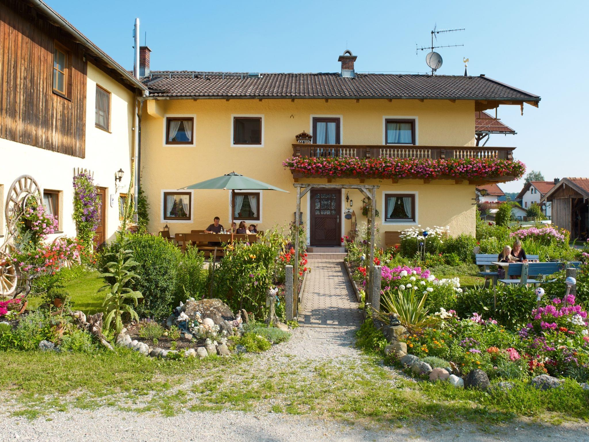 Hinter Omas Welt verbirgt sich unsere schöne gut ausgestattete und gemütliche Ferienwohnung für maximal 5 Personen. Im Landhausstil eingerichtet finden Sie in unserer 55 qm großen Ferienwohnung alles, was Sie im Urlaub benötigen. In der Küche mit Essbereich können Sie sich fantastische Gerichte zaubern. Und wenn Sie sich Ihr Frühstück nicht selbst machen wollen, so können Sie sich gerne nach Absprache in unserem Frühstücksraum mit einem reichhaltigen Frühstück verwöhnen lassen. Auch am Abend ist es zu unseren Gastwirten im Ortskern nicht weit. In wenigen Gehminuten können Sie sich eine Pizza, ein Schnitzel oder einen knusprigen Schweinebraten im Biergarten schmecken lassen. Ein Elternschlafzimmer mit Doppelbett, sowie eine ausziehbare Couch im Wohnzimmer runden einen erlebnisreichen Tag ab. Aus jedem Fenster hat man einen schönen Ausblick auf die Natur und alles was sich auf unserem Bauernhof tut. Der schönste Blick ist aus dem Schlafzimmer auf Omas Bauerngarten mit einer Pracht an Blumen. Da ist jede Müdigkeit verschwunden!