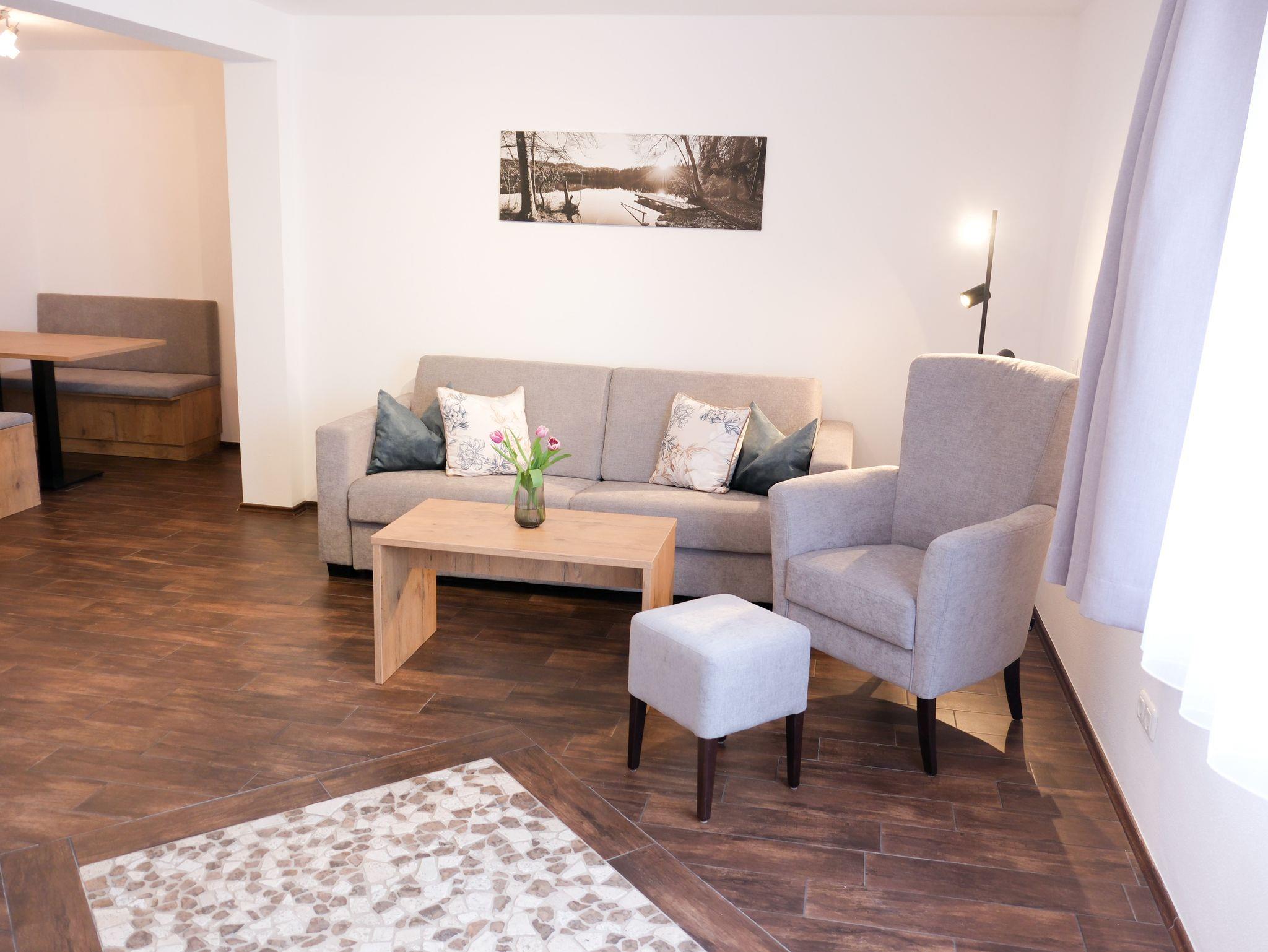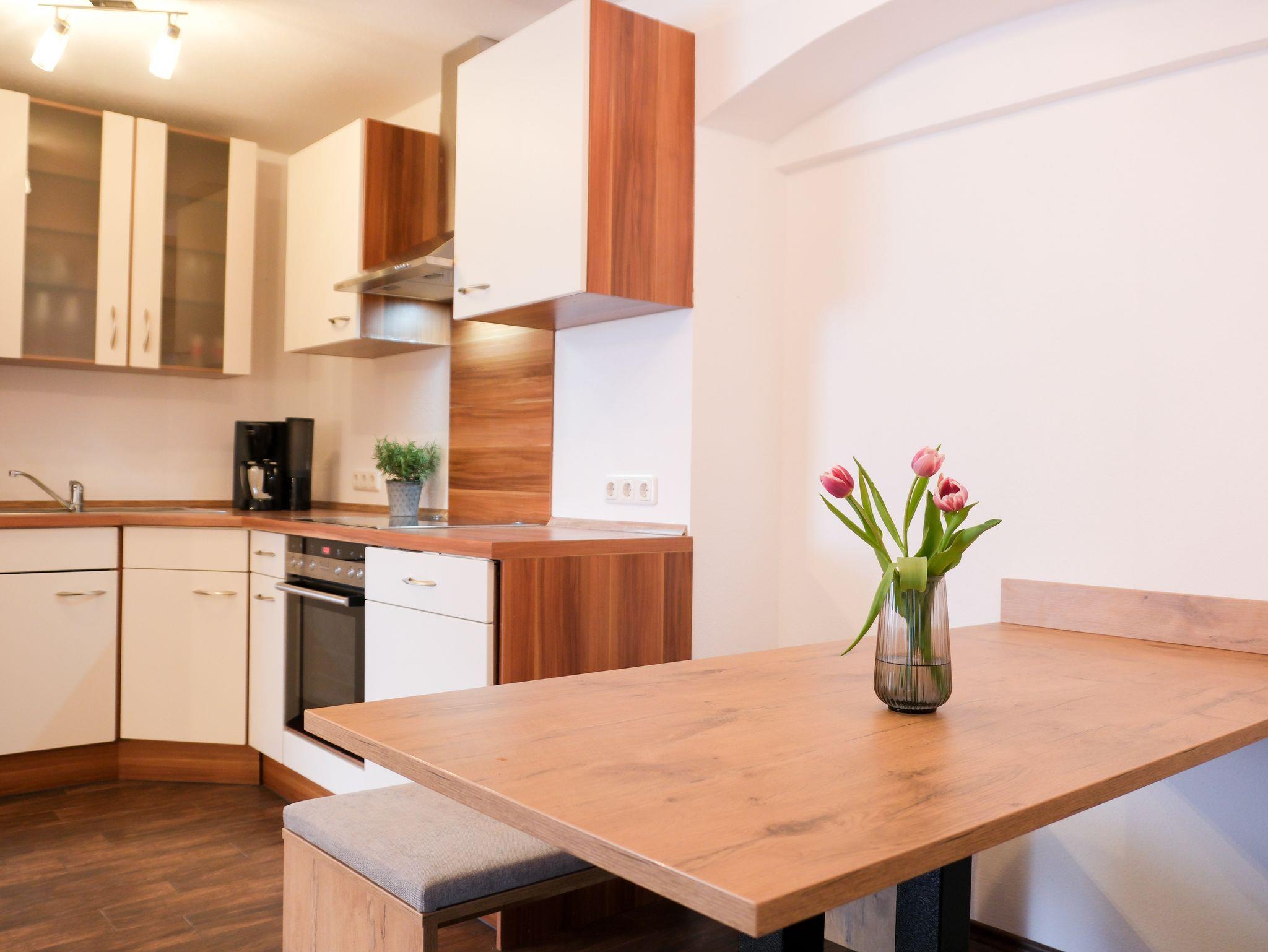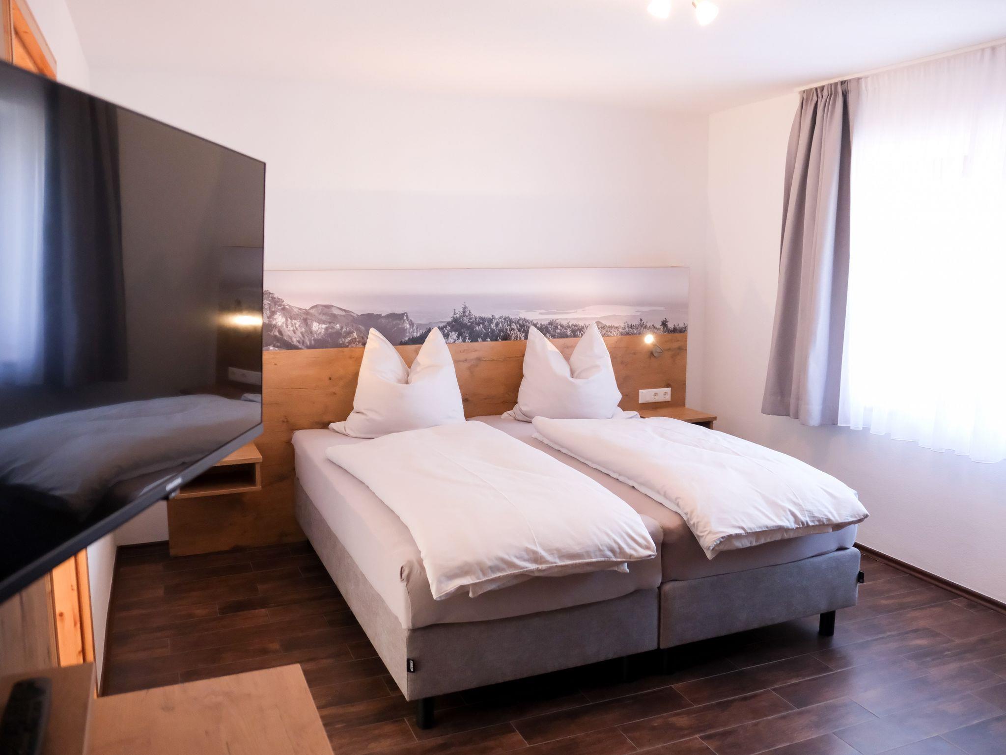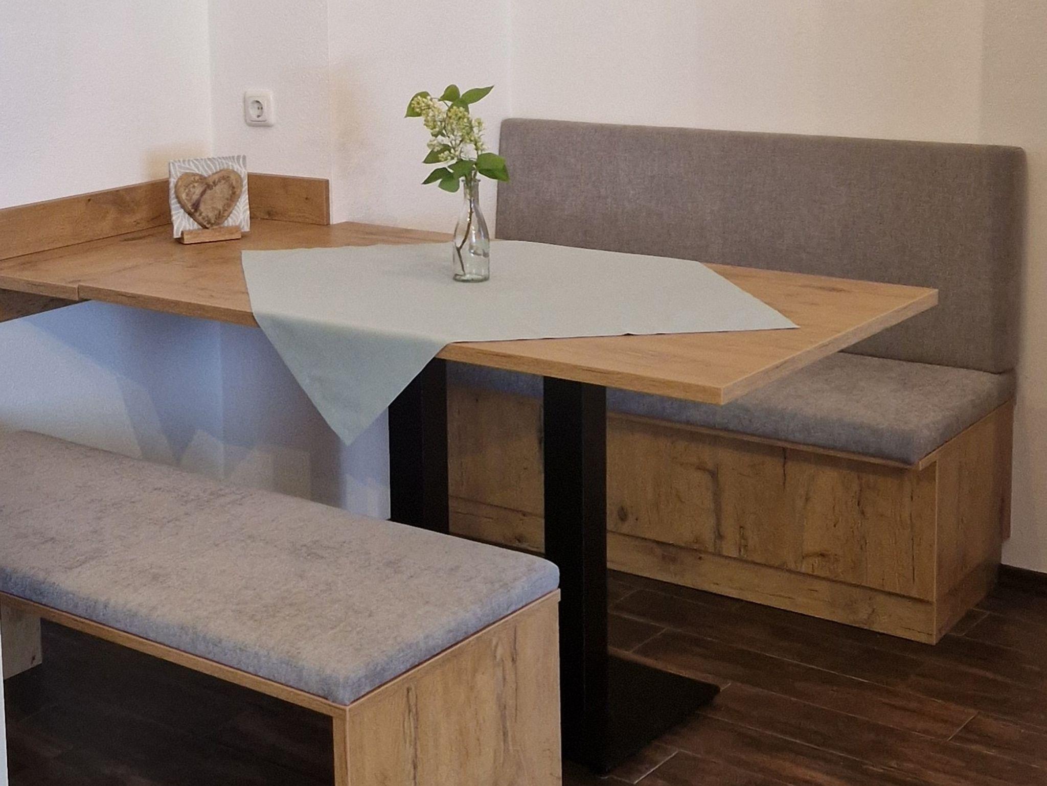 Unsere Wohnung bietet eine eigene Sonnenterrasse sonnenseitig mit Bergblick, Liegemöglichkeiten, Sonnenschutz und einem Grillplatz. Die Wohnküche ist mit einem Essbereich, einer Couch mit Leselampe, und einem TV-Flachbildschirm ausgestattet. In der Küche ist befinden sich alle E - Geräte wie der Kühl - und Gefrierschrank, Toaster, Kaffeemaschine und der Eierkocher.Geschirrtücher, Geschirrspülmittel und Spülmaschinentabs sind inclusiv. Eine Waschmaschine und ein Tockner sind vorhanden, sowie Abstellmöglichkeiten für die Koffer oder Getränkekisten. Im Schlafzimmer befindet sich ein Boxspringbett, Verdunklungsvorhänge und ein TV - die Bettwäsche wird gestellt. Im geräumigen Badezimmer befindet sich eine Badewanne, eine Toilette und eine begehbare Dusche, Handtücher werden ebenfalls gestellt. Eine zweite Toilette finden Sie im Eingangsbereich. Ein Zustellbett für ein Kind bis max. 10 Jahre ist auf Anfrage vorhanden. Für eine ruhige und leise Atmosphäre sind in den Schlaf - und Wohnraum Schallschutzfenster eingebaut.