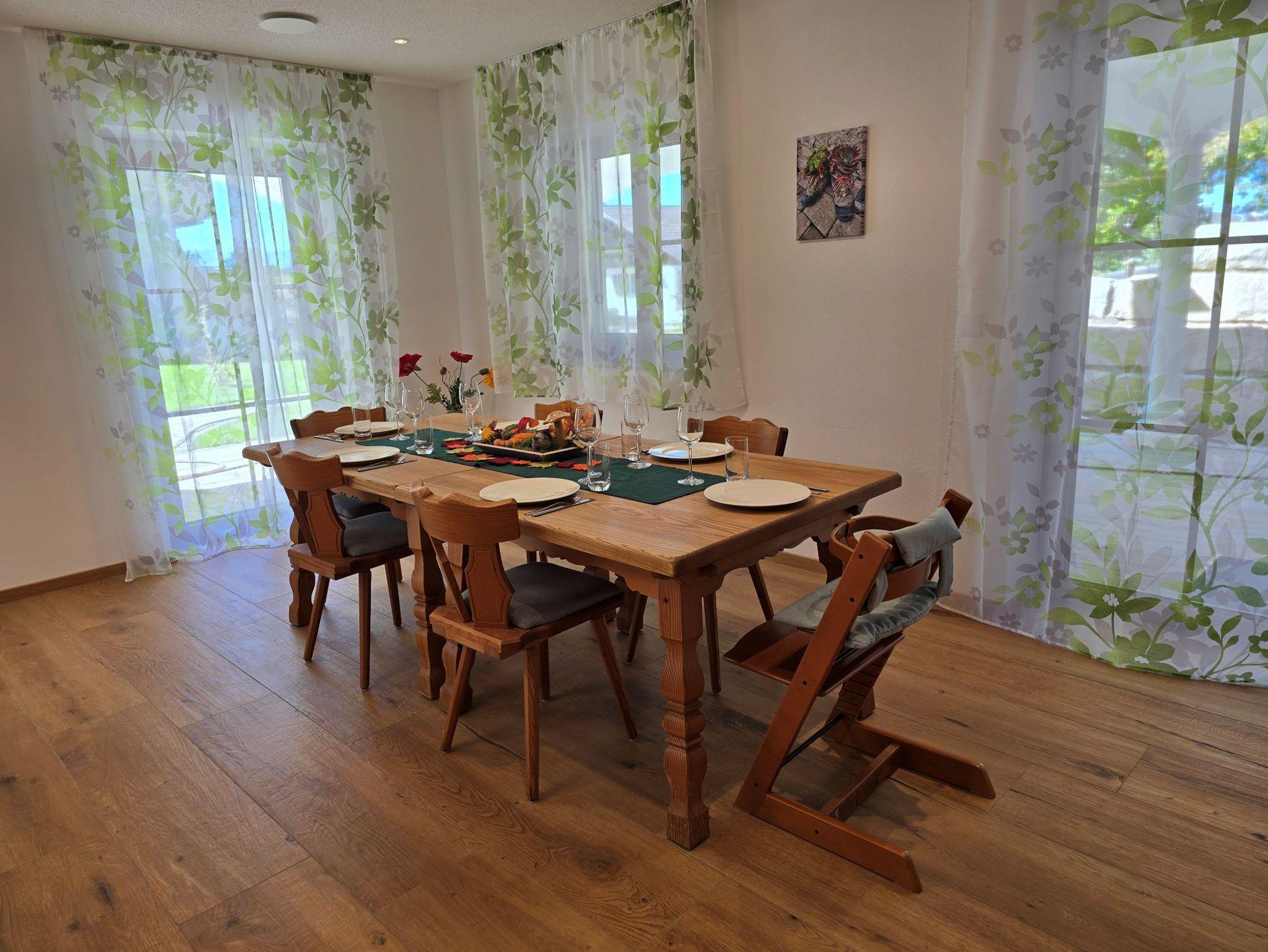 Die Wohnung liegt im Gartengeschoss eines 2025 neu gebauten, nachhaltig konzipierten Zweifamilienhauses. Das bedeutet für uns auch, dass die Räume im Winter auf maximal 23°C geheizt werden können (wer die Umwelt schonen möchte stellt maximal 21-22°C ein).