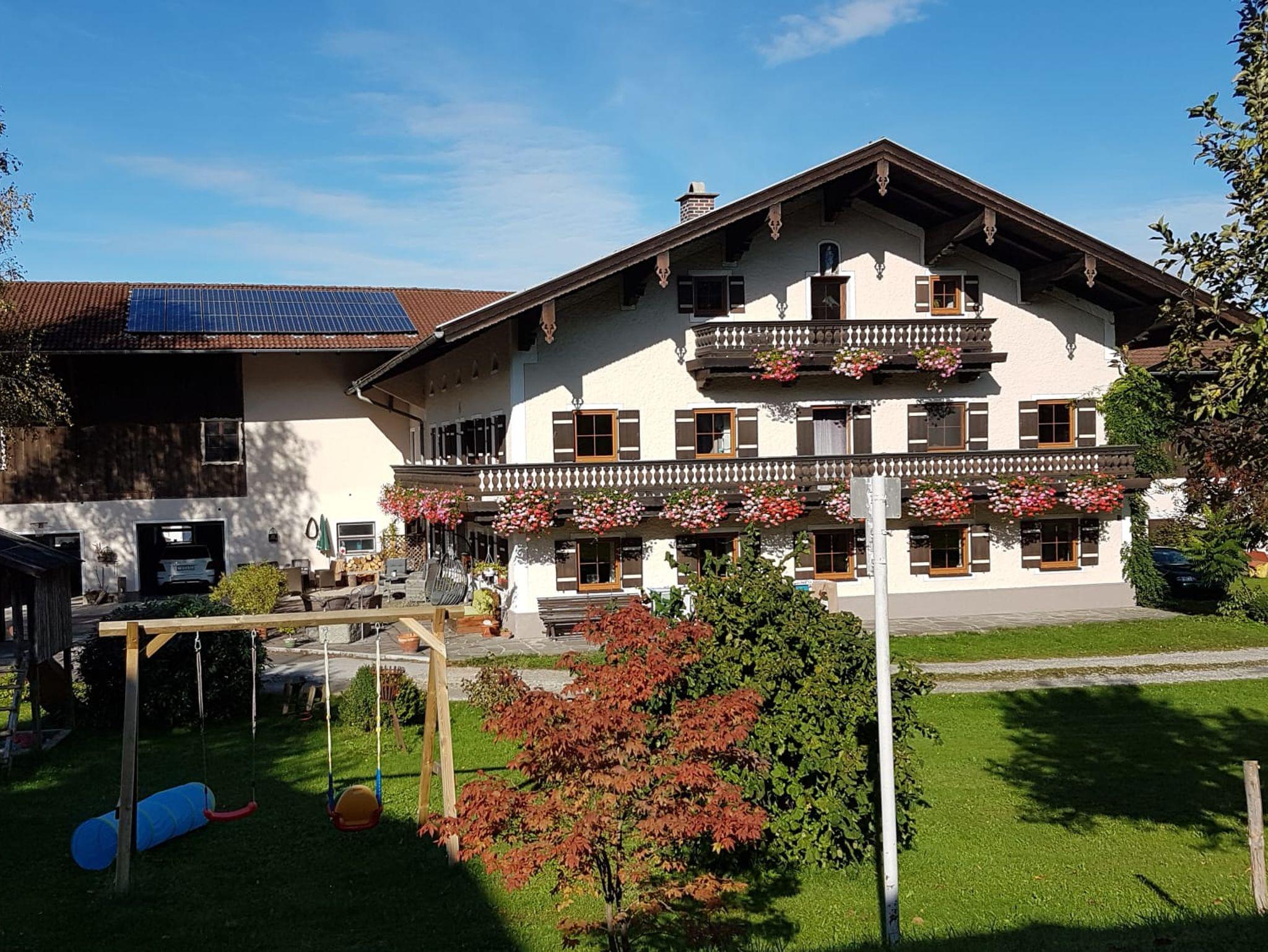 Auf unserem sehr schönen Bauernhof befinden sich zwei Ferienwohnungen und ein bzw. zwei Doppelzimmer. Bitte beachten Sie: das Doppelzimmer (das grüne Zimmer) befindet sich im ersten Stock, das dazugehörige Bad im Erdgeschoß! Für eine dritte und vierte Person kann ein zusätzliches Doppelzimmer (das rote Zimmer) dazugebucht werden (über die Angabe der Personenzahl). Das zweite Doppelzimmer ist auch 20 qm groß, frisch renoviert und liegt ebenfalls im ersten Stock. Das erwähnte Bad ist für beide Doppelzimmer und wird nur von diesen genutzt! Für Kinder ist auf unserem Bauernhof jede Menge Platz zum Spielen. EinKinderspielplatz mit Sandkasten, Schaukel und Rutsche steht unseren Kleinen zur Verfügung. Auch einRiesentrampolin lässt Kinderherzen höher schlagen. Auf unseren Pferden oder Ponykann nach Absprache geritten werden. Die Kleintiere dürfen jederzeit gestreichelt werden. Unser Bauernhof liegt im Ortsteil Erlstätt. In der Kreisstadt Traunstein, die Sie in 5 Minuten mit demAuto erreichen können finden Sie alle wichtigen Einrichtungen, eine Fußgängerzone zum Durchbummeln und vieles mehr. Auch zum Badestrand an den Chiemsee sind es nur 5 Minuten mit dem Auto. Im Winter finden Sie einen Rodelhang am Haus, Loipen in der Nähe (ca. 2 km), Skigebiete in der Umgebung. - Wir möchten Ihnen Ihren Aufenthalt so angenehm wie möglich machen und freuen uns auf Ihren Besuch. Familie Strohmayer