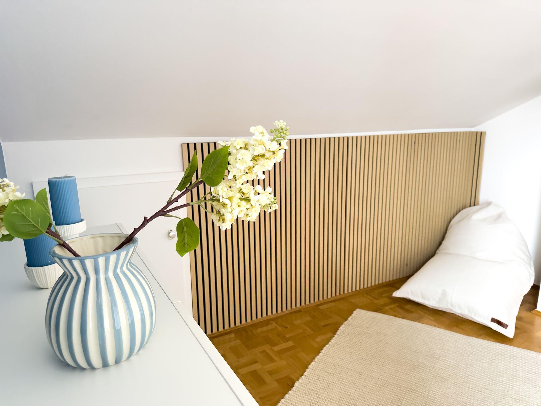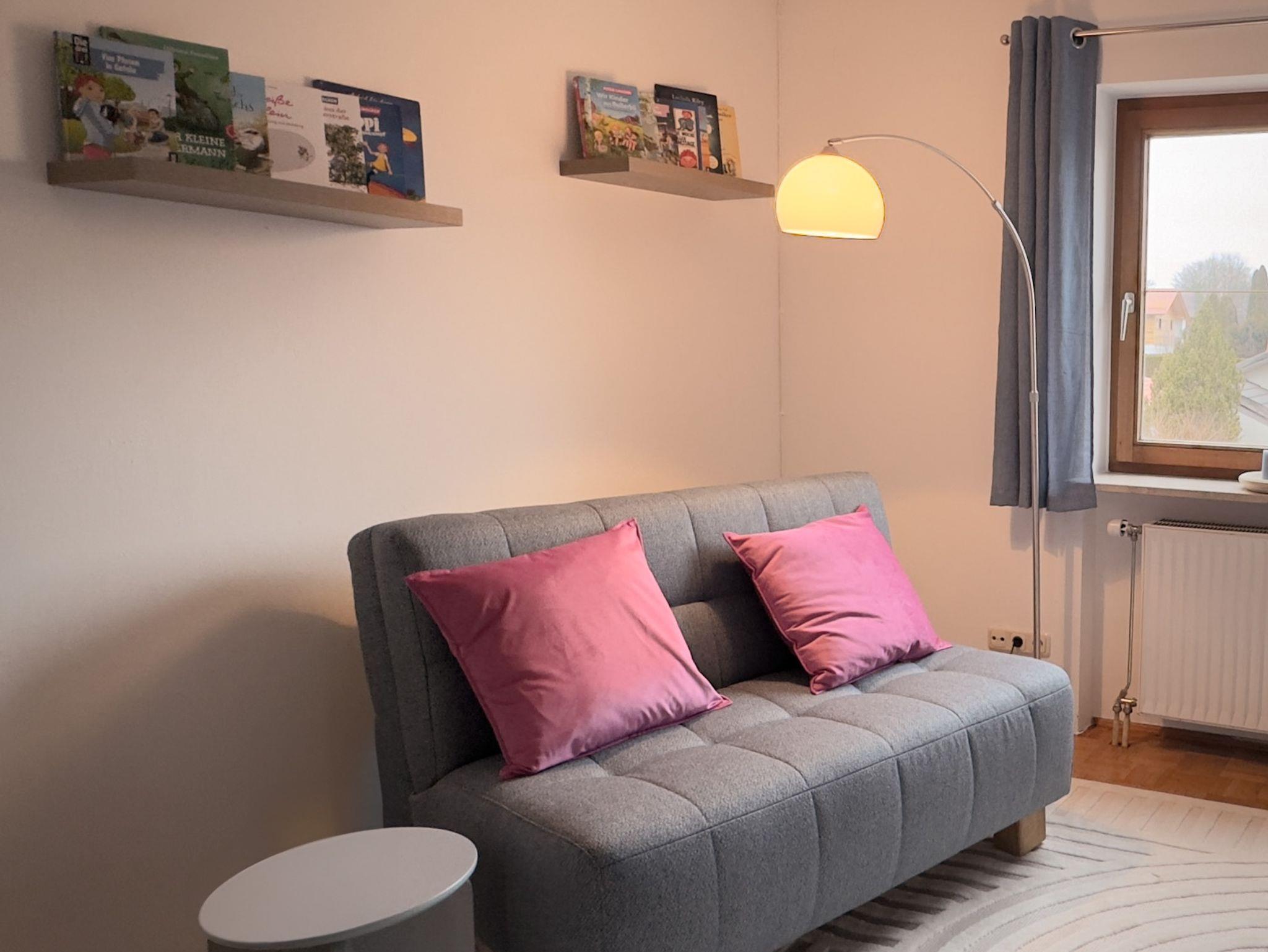 Doppelbett 180 cm x 200 cm, in diesen Raum kann bei Bedarf eine Schlafcouch aufgestellt werden mit den Maßen 120cm x190cm