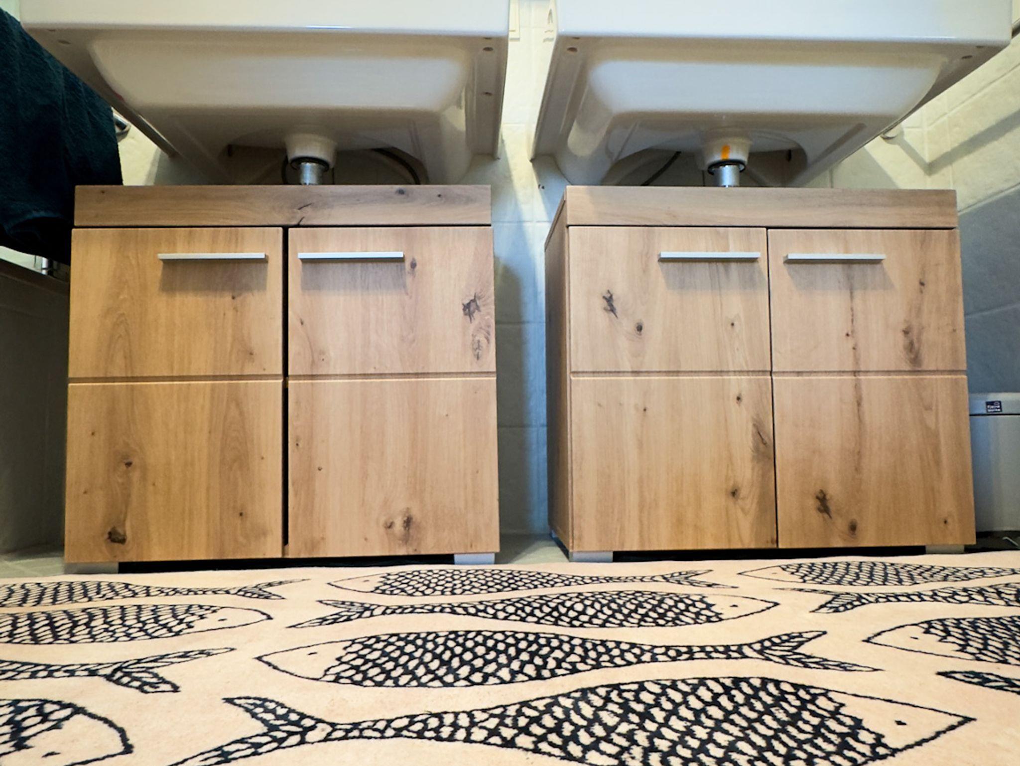 Schlafzimmer 1 hat ein angrenzendes eigenes Bad mit Badewanne und Duschwand, sowie 2 Waschbecken