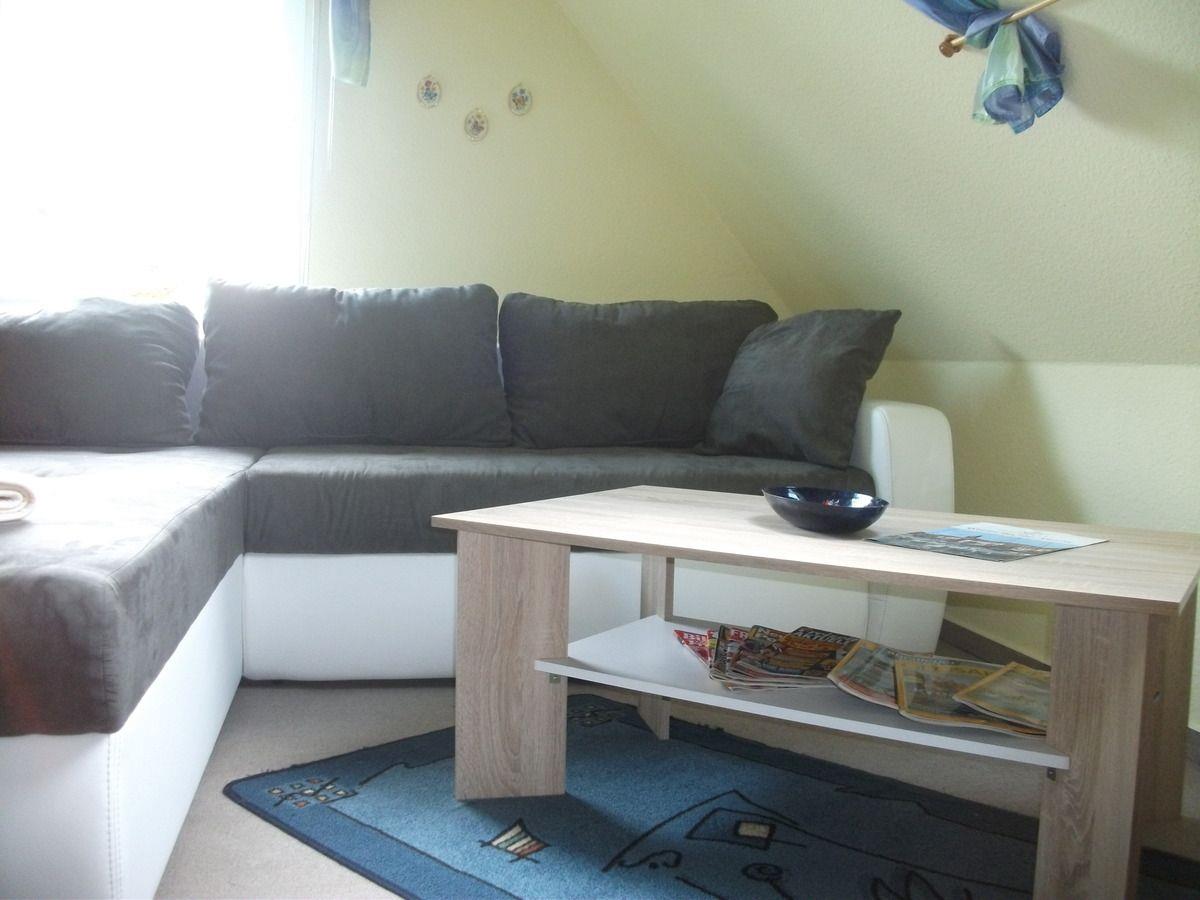 Das 50 m² Ferienhaus betreten Sie über einen kleinen Flur mit Garderobe, einem Schuhschrank und einem Kleiderschrank. Weiterhin befindet sich im Erdgeschoss ein Zimmer mit einer Sitzecke aus Rattan. Über eine Treppe gelangen Sie in das Obergeschoss. Hier befindet sich das Schlafzimmer, das Wohn – und Esszimmer sowie die Küche. Im Schlafzimmer steht ein Doppelbett und ein Kleiderschrank. Das Wohn – und Esszimmer ist mit einer Eckcouch, einem Clubtisch, einem TV-Gerät, einer Stereoanlage und dem Esstisch mit 6 Stühlen eingerichtet. In der offenen Küche finden Sie einen 4 Platten Elektroherd mit Backofen, einen Geschirrspüler, eine Kaffeemaschine, einen Wasserkocher, einen Toaster und einen Kühlschrank mit Tiefkühlfach. Im Badezimmer sind eine Dusche, ein Waschbecken mit Spiegel, ein Handtuchhalter und das WC. Über eine Wendeltreppe gelangen Sie in das Dachgeschoss. Hier gibt es drei weitere Schlafplätze und eine Kommode. Zum Ferienhaus gehört eine Terrasse mit Gartenmöbel, einem Sonnenschirm und einem Grill. Hier können Sie entspannt in den Tag starten oder die Abende gemütlich ausklingen lassen. Ein Autostellplatz befindet sich gleich am Ferienhaus, unter dem Carport. Für die Kleinen und Großen stehen Ihnen Gesellschaftsspiele und Lektüren zur Verfügung, sowie für unsere kleinen Feriengäste ein kleiner Spielplatz, mit einer Schaukel, einem Sandkasten, einem Trampolin auf dem Grundstück.