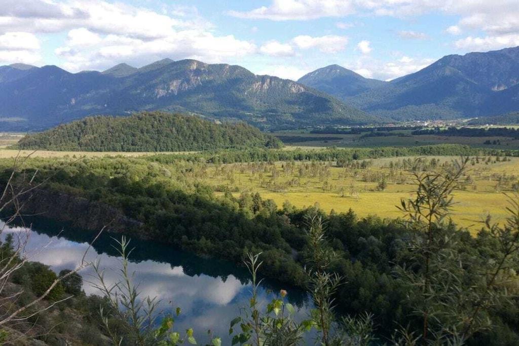Ein Blockhaus, das gekonnt den Charme eines Holzhauses mit Modernität und Komfort verbindet, wartet auf naturbegeisterte Gäste, die nicht auf die Errungenschaften der heutigen Technik wie WLAN und Digital TV verzichten wollen. Vom offenen Wohn-/Koch- und Essbereich hat man durch große Fenster einen herrlichen Blick auf die umliegenden Berge und eine ungewöhnliche Designertreppe führt in das gemütliche Obergeschoss, das aus zwei Schlafzimmern und einer Toilette besteht. Das Badezimmer, sowie ein kleiner Vorratsraum und der Versorgungsraum befinden sich im Erdgeschoss.