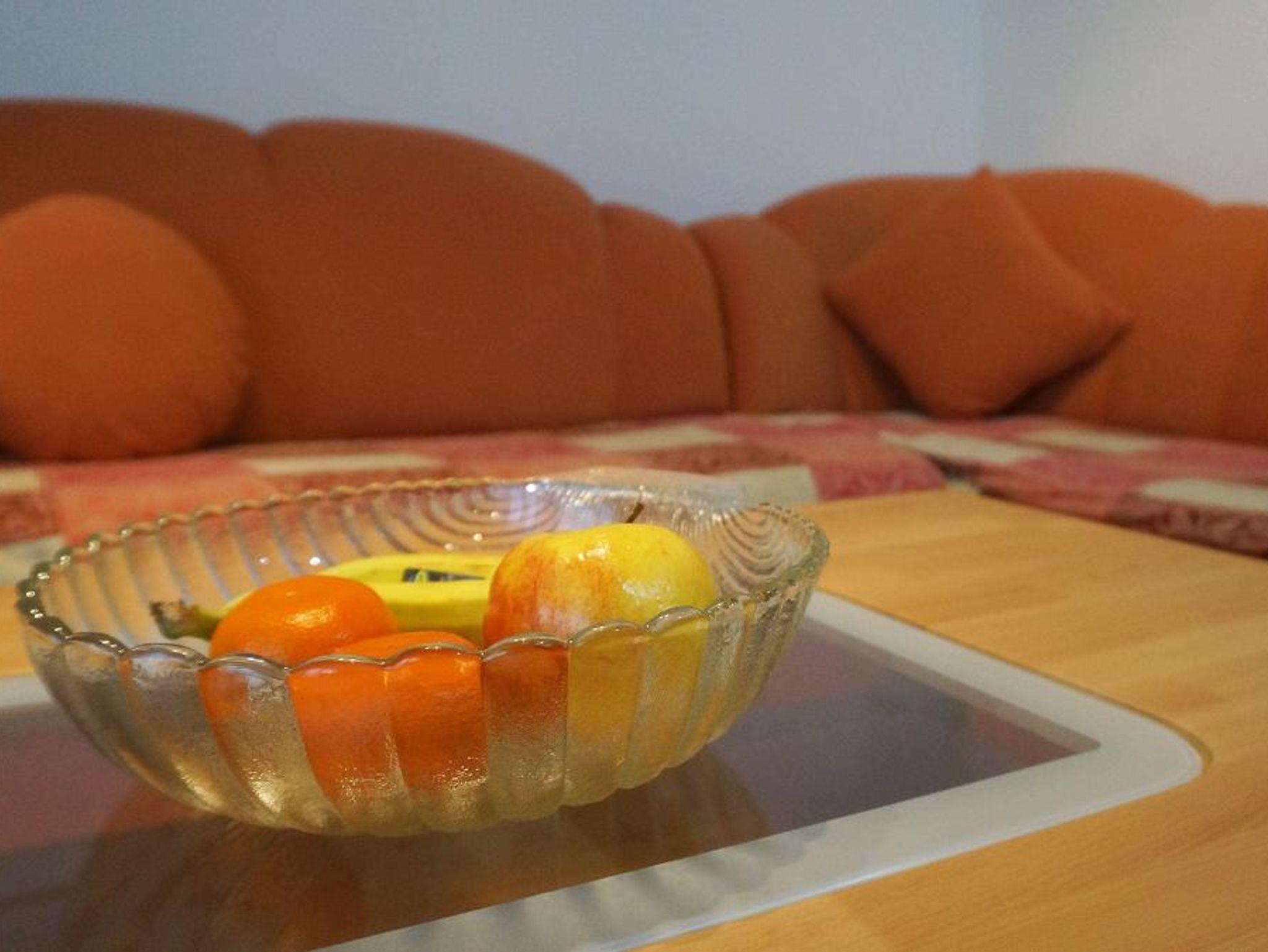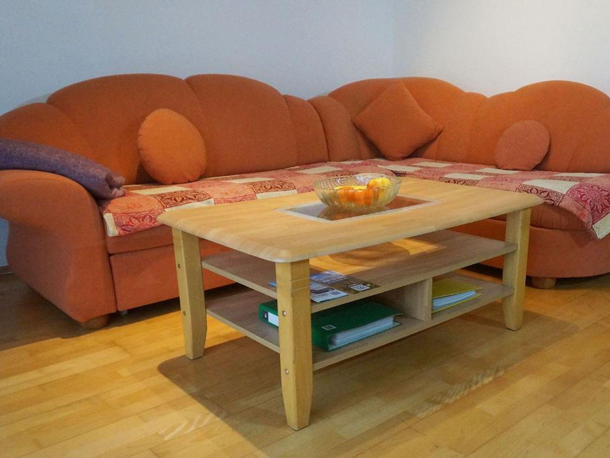 Das gemütliche Wohnzimmer mit (Schlaf-)Couch und Flachbildfernseher lädt zum Verweilen ein. Die komplett ausgestattete Küche mit Geschirrspüler und Esstisch lässt keine Wünsche offen. Die Ferienwohnung verfügt über ein Schlafzimmer mit Doppelbett und Kinder- Etagenbett. Ein Bad mit Badewanne rundet das Gesamtbild ab. Das WLAN und den Parkplatz vor dem Haus können Sie kostenfrei nutzen.