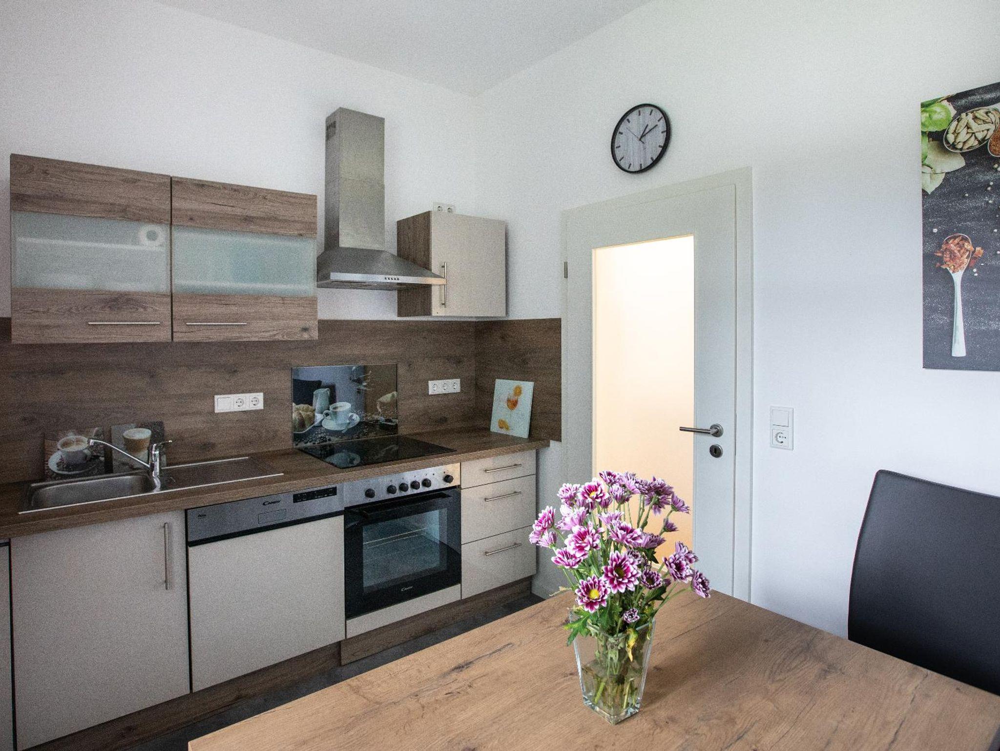 einem Kochfeld ausgestattet. Ebenfalls verfügt die Ferienwohnung über einen