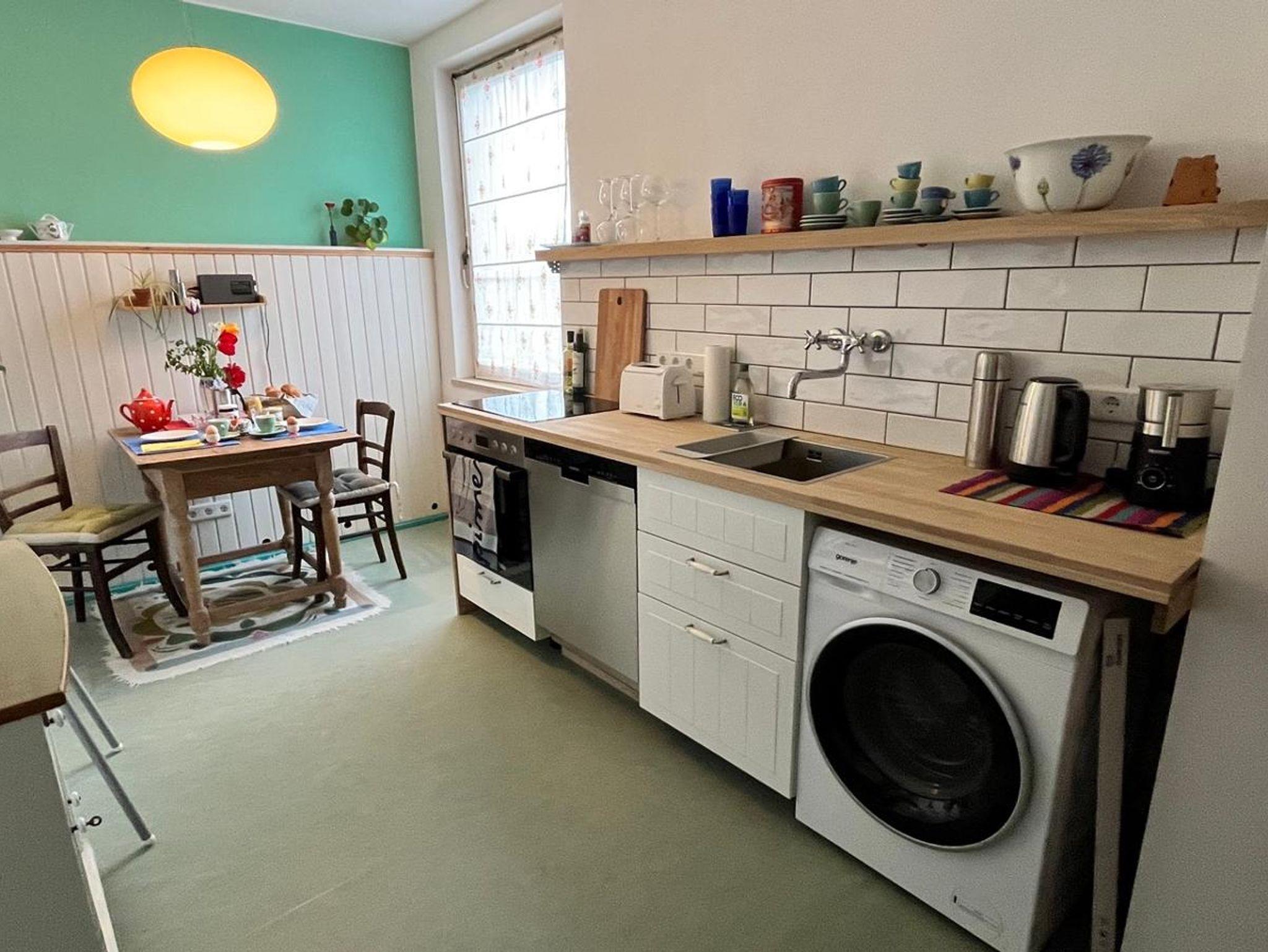 Eine Ferienwohnung wie sie uns selbst gefallen würde - nach diesem Motto haben wir das Appartement Sandsteig 1 gestaltet. Harmonische Farben, ein Hauch Vintage und eine hochwertige Ausstattung machen diese Wohnung zu einem Ort, an dem Sie sich wohlfühlen und entspannen können. Voll ausgestattete Wohnküche mit Geschirrspülmaschine, Waschtrockner, Herd und Kühlschrank mit Eisfach. Großer Wohn-Schlafraum mit Sofa und gemütlichem Sessel. Helles, schönes Badezimmer mit begehbarer Dusche. Geräumiger Gang und eigener Eingang.