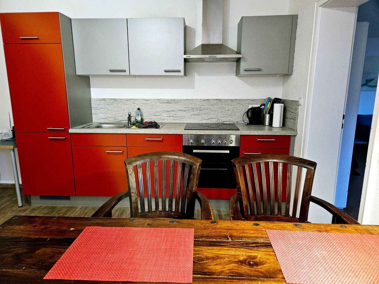 Die gut ausgestattete Küche mit Essbereich lässt keine Wünsche offen: Eine Spülmaschine, ein Cerankochfeld, Backofen, Wasserkocher, Kaffeemaschine und alle notwendigen Küchenutensilien sowie Geschirr sind vorhanden, um im Urlaub den Kochlöffel zu schwingen. Für die Nutzung stehen zudem eine Waschmaschine im Gemeinschaftsbereich und eine geräumige Garderobe bereit, um Ihren Aufenthalt so angenehm wie möglich zu gestalten.