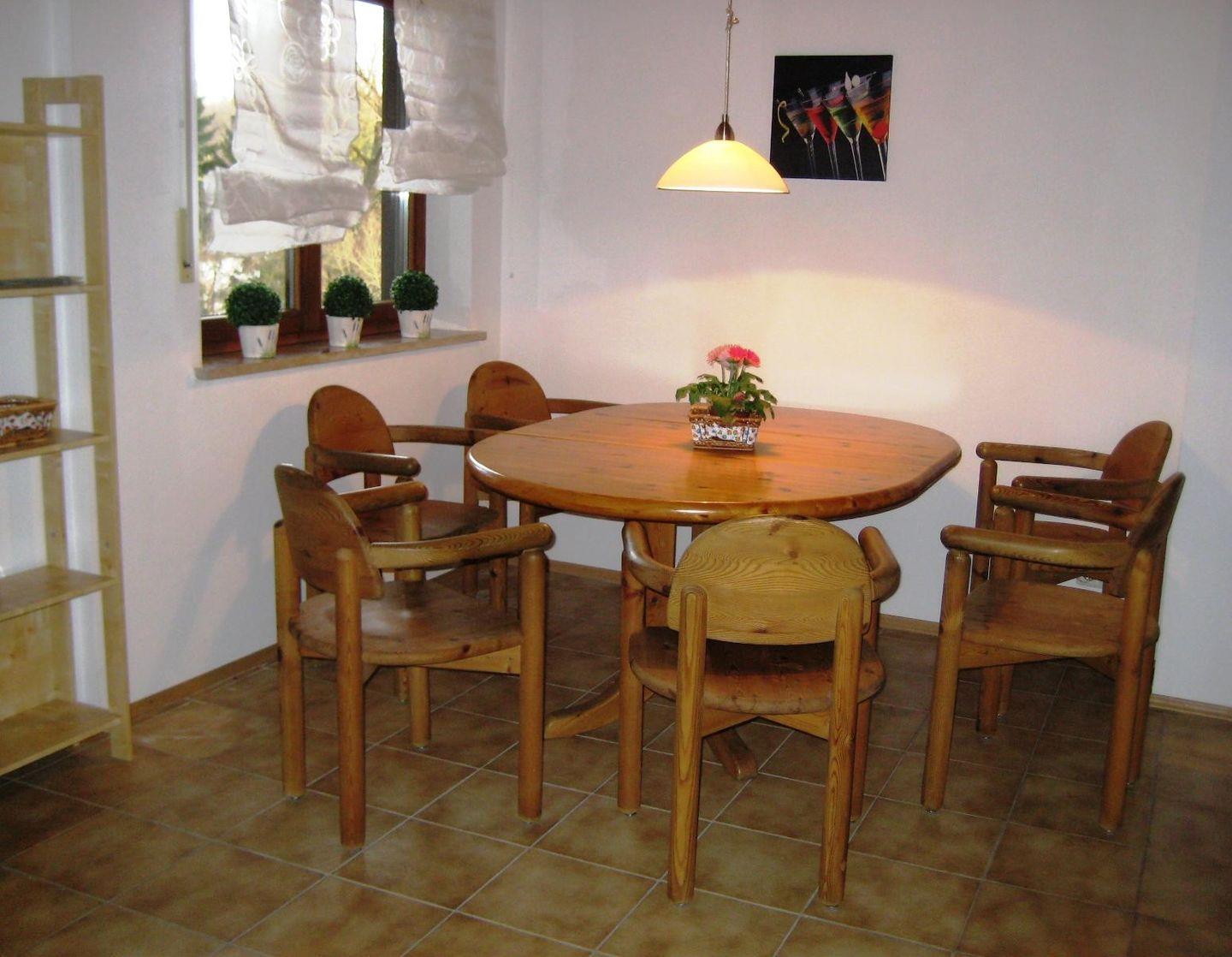 Die moderne, offen gestaltete Küche ist der ideale Ort, um gemeinsame Mahlzeiten zuzubereiten. Sie ist vollständig ausgestattet mit einem Cerankochfeld, Backofen, Spülmaschine, Kühlschrank und einem praktischen Gefrierschrank. Eine Senseo Padmaschine kann auf Wunsch bereit gestellt werden.Der angrenzende Essbereich schafft eine behagliche Atmosphäre für gesellige Abende. Das Wohnzimmer ist hell und einladend, ausgestattet mit Fliesenboden und einer Sofaecke, wo Sie entspannt Zeit verbringen oder einen Film auf einem der zwei verfügbaren Fernseher genießen können. Im Wohnzimmer befindet sich ein zusätzliches Bett.