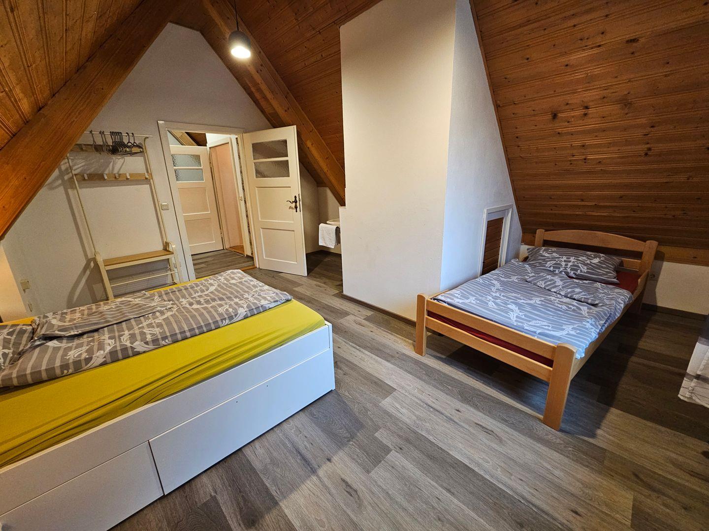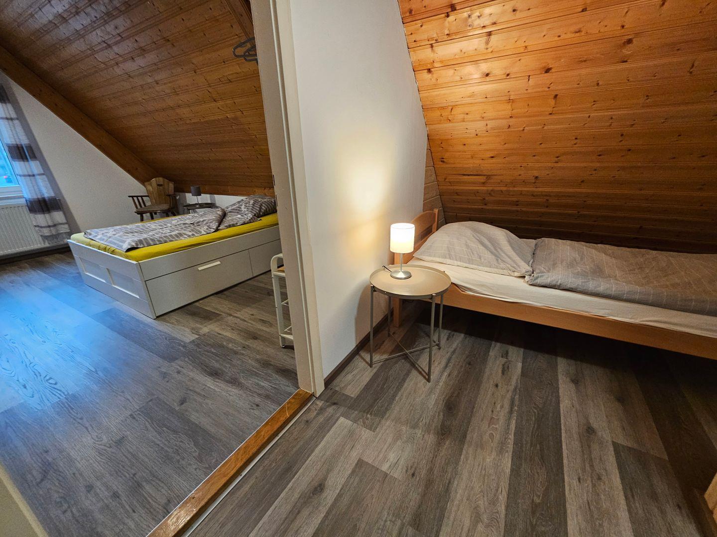 Die Ferienwohnung verfügt über insgesamt drei einladende Schlafzimmer, die stilvoll und gemütlich eingerichtet sind. Jedes Zimmer ist ein Rückzugsort der Ruhe, wo Sie nach einem erlebnisreichen Tag entspannen können. Allerdings ist zu beachten, dass ein Einzelzimmer ein Durchgangszimmer ist! Die Zimmer sind mit einem hochwertigen Vinylboden ausgestattet, der sowohl Komfort als auch pflegeleichte Handhabung bietet. Besonderen Wert wurde auf eine ruhige Atmosphäre gelegt, damit Sie sich wie zu Hause fühlen können. Das Einzelzimmer hat eine Infrarotheizhung, alle anderen Räume Heizkörper mit Zentralheizung.