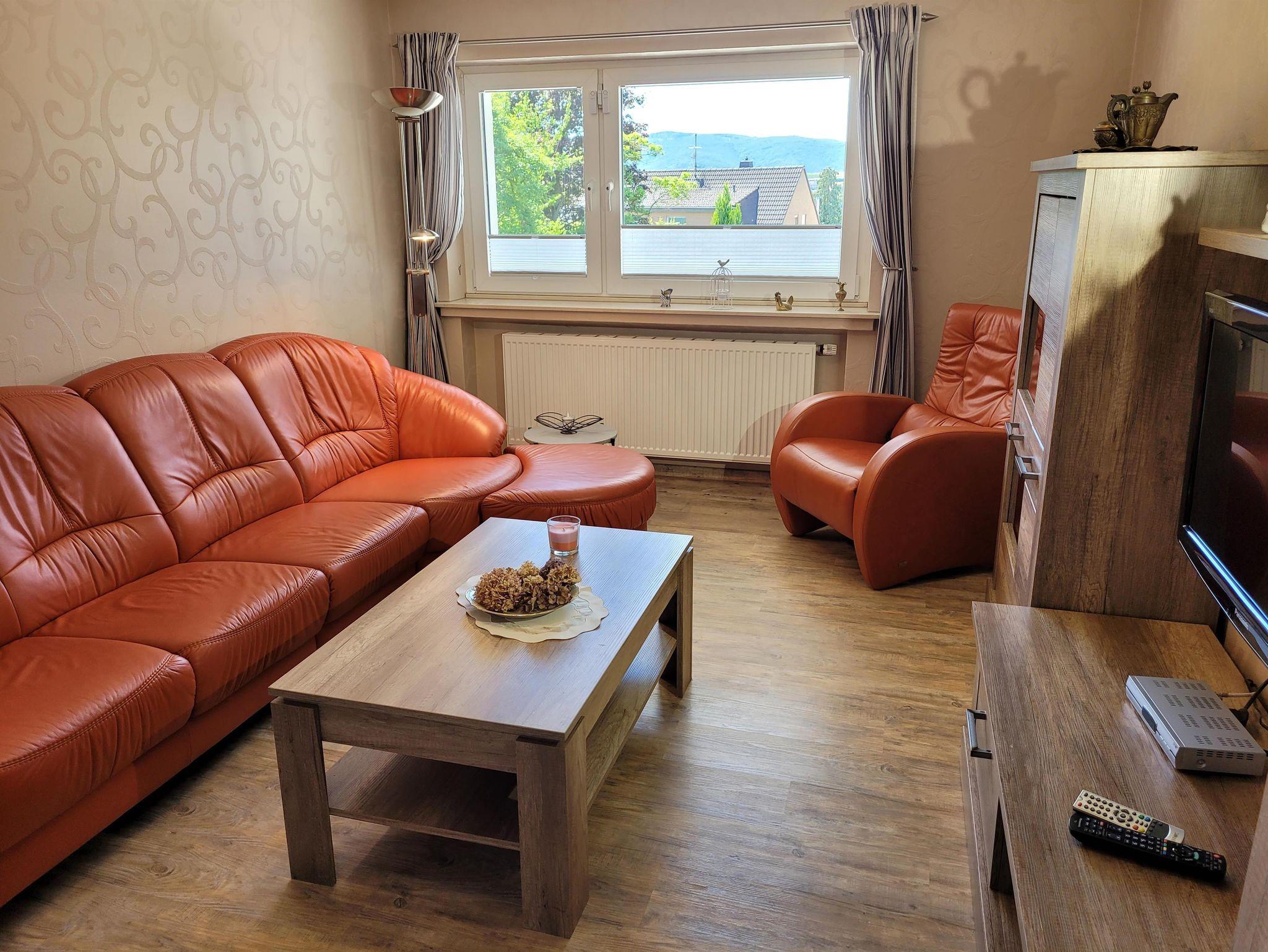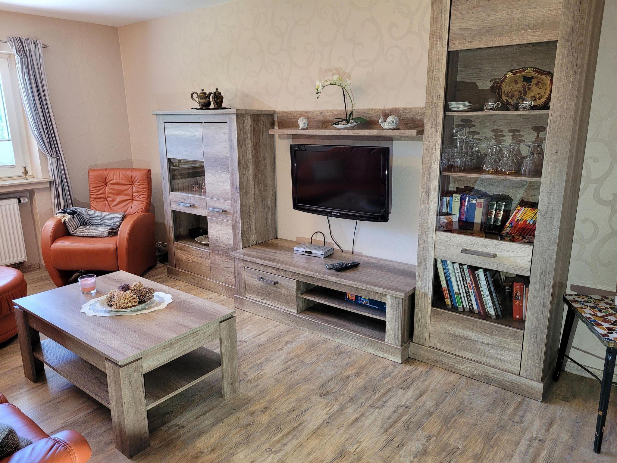 Das Wohnzimmer verfügt über eine gemütliche Ledercouch und einem Fernsehsessel, der zum Träumen oder Lesen einlädt. Ein Fernseher und kostenfreier W-LAN, DSL-Anschluss ist auch vorhanden.