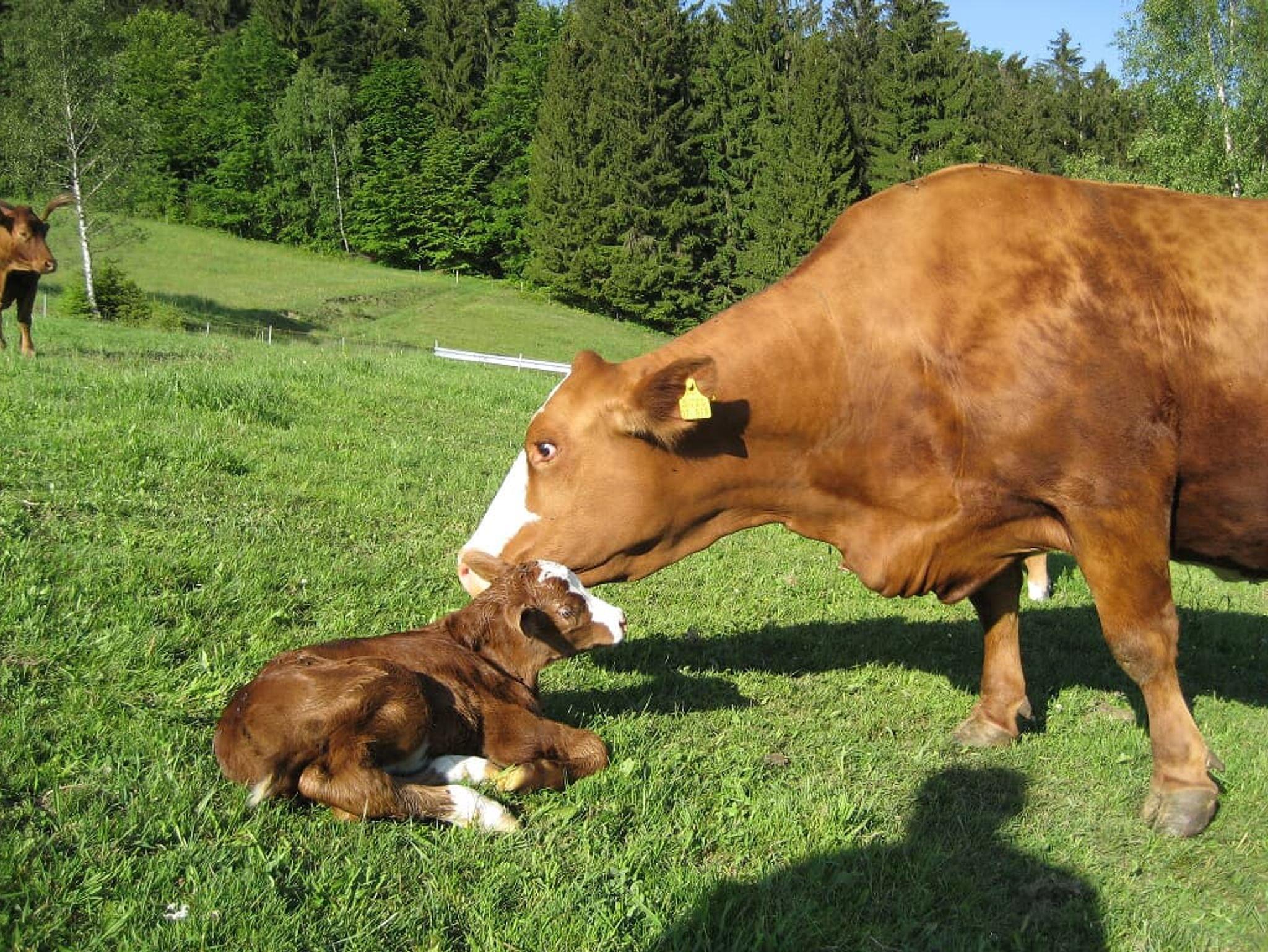 Grünlandbetrieb mit Tieren am Hof, Kinderspielplatz, Liegewiese, Gartenhaus und Grillplatz.