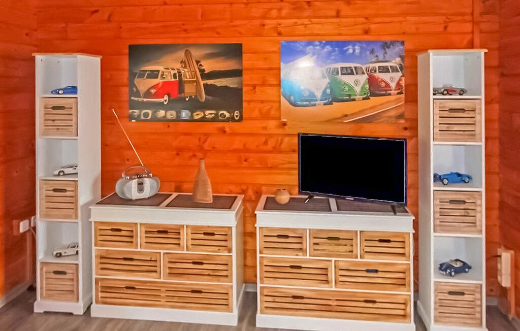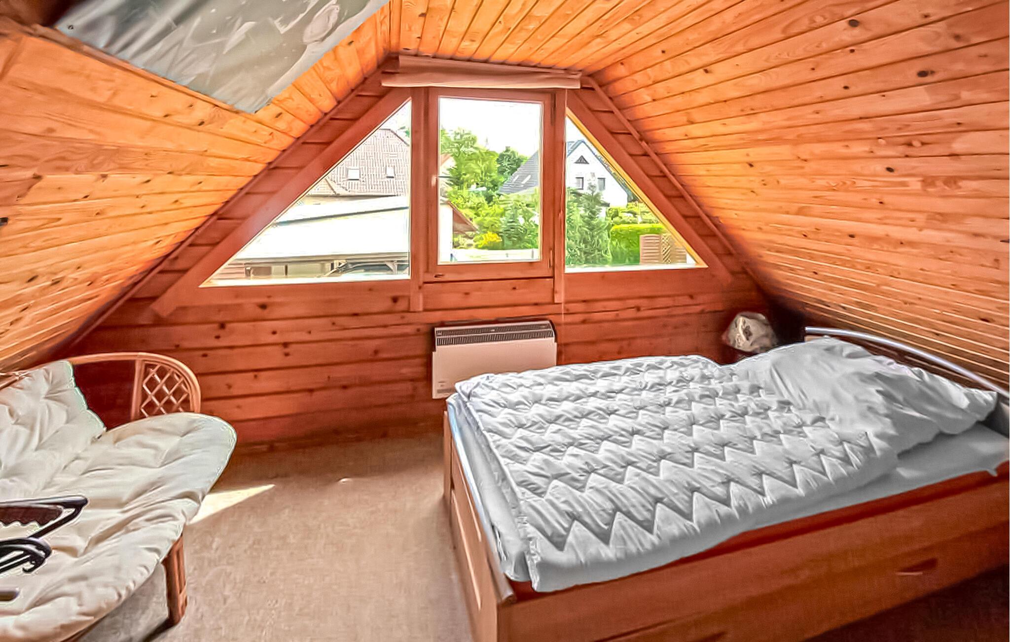 Das Ferienhaus im skandinavischen Blockhausstil steht auf einem großflächigen separaten Grundstück in sehr ruhiger Lage, ca. 800 m vom Badestrand am Stettiner Haff entfernt. Es ist rustikal ausgestattet mit einem Wohnraum (Polstermöbel mit Schlaffunktion, Flachbild-TV, Radio), offene Küchenzeile (E-Herd mit Backofen, Kühlschrank mit Tiefkühlteil, Esstisch, div. Küchengeräte), 2 Schlafräume über steile Treppe (1 x Doppelbett, 1 x Rollbett), DU/WC, Elektroheizung. An der Treppe ist im OG ein Schutzgitter für Kleinkinder angebracht.Zur Verfügung stehen: möblierte Terrasse, Balkon mit unverbautem Blick in die freie Natur, Grill und PKW-Stellplatz.Im Gesamtpreis enthalten sind: Endreinigung und Wasserverbrauch. Bettwäsche und Handtücher können mitgebracht oder wahlweise gemietet werden. Energie nach Verbrauch. Das Ferienhaus ist aufgrund der steilen Treppe nicht für gehbehinderte Personen geeignet.
