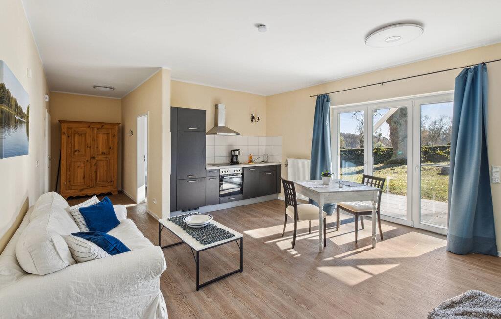 Die Wohnung begrüßt Sie umgeben von idyllischer Landschaft nahe dem See und lädt dazu ein, den Alltag in angenehmem Ambiente hinter sich zu lassen. In den und ansprechend möblierten Räumen können Sie es sich gut gehen lassen. Ob gutes gemeinsames Essen mit Blick in den Garten oder ein gemütlicher Abend auf dem Sofa, hier finden Sie nach Ihren Unternehmungen den richtigen Rahmen für eine schöne gemeinsame Zeit.