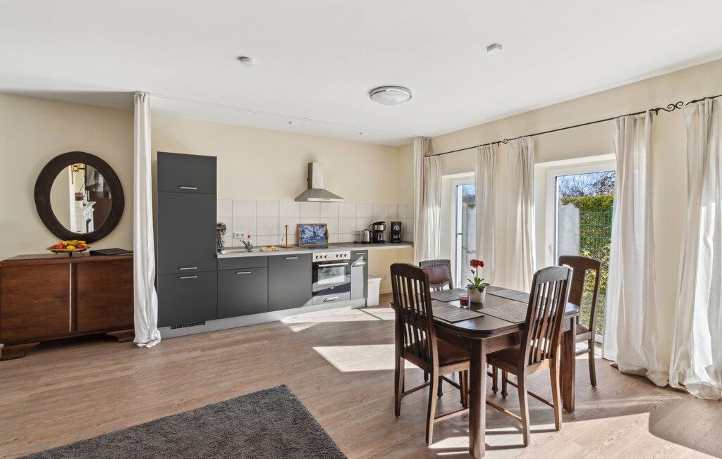 Tanken Sie neue Energie in dieser gemütlichen Ferienwohnung unweit des Großen Wentowsees. Umgeben von viel Grün und in ruhiger Lage verbringen Sie entspannte Tage fernab vom Alltag. Der helle Wohnbereich mit Zugang zur Terrasse lädt zum Ausruhen ein. Machen Sie es sich auf dem Sofa bequem, genießen Sie einen entspannten Fernsehabend oder lesen Sie ein gutes Buch. Am Esstisch finden Sie Platz für gemeinsame Mahlzeiten oder eine Runde Karten.