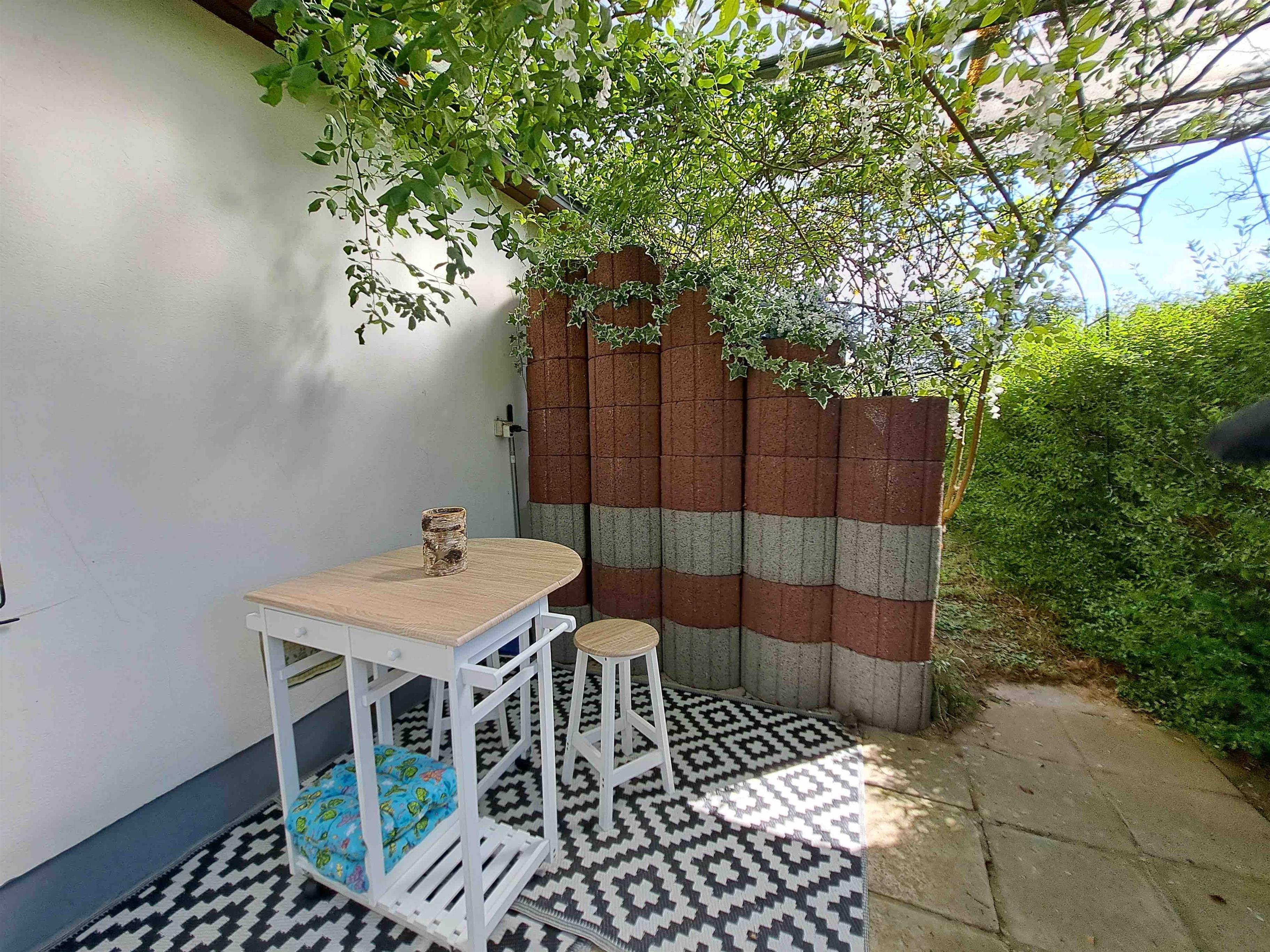 Terrasse: Überdacht, Süd-West-Ausrichtung mit Gartenmöbeln.