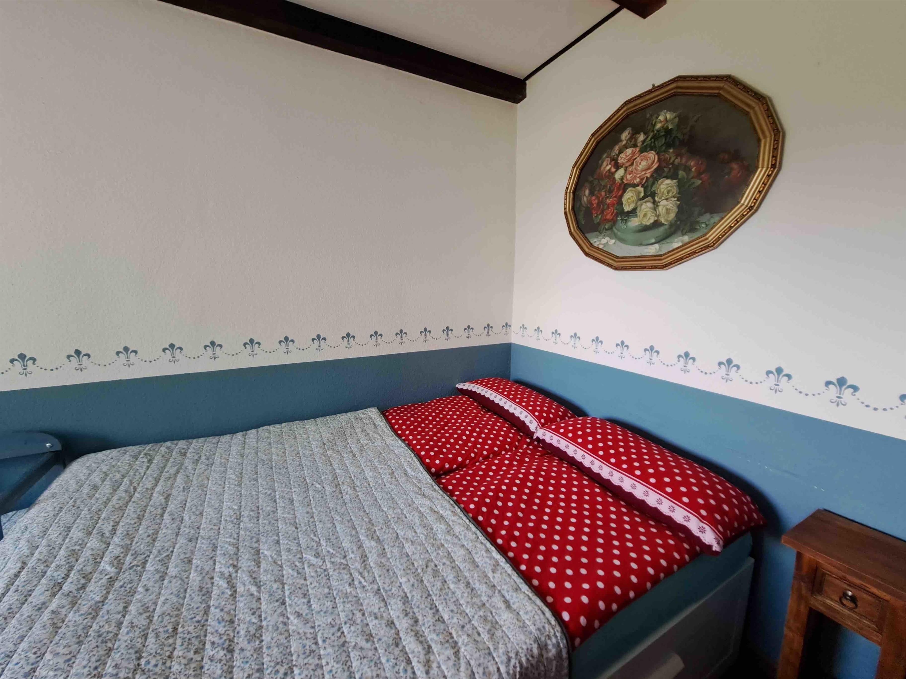 Schlafzimmer: ausziehbares Doppelbett 90-140cm breit. Aufbettung mit Babybett möglich.