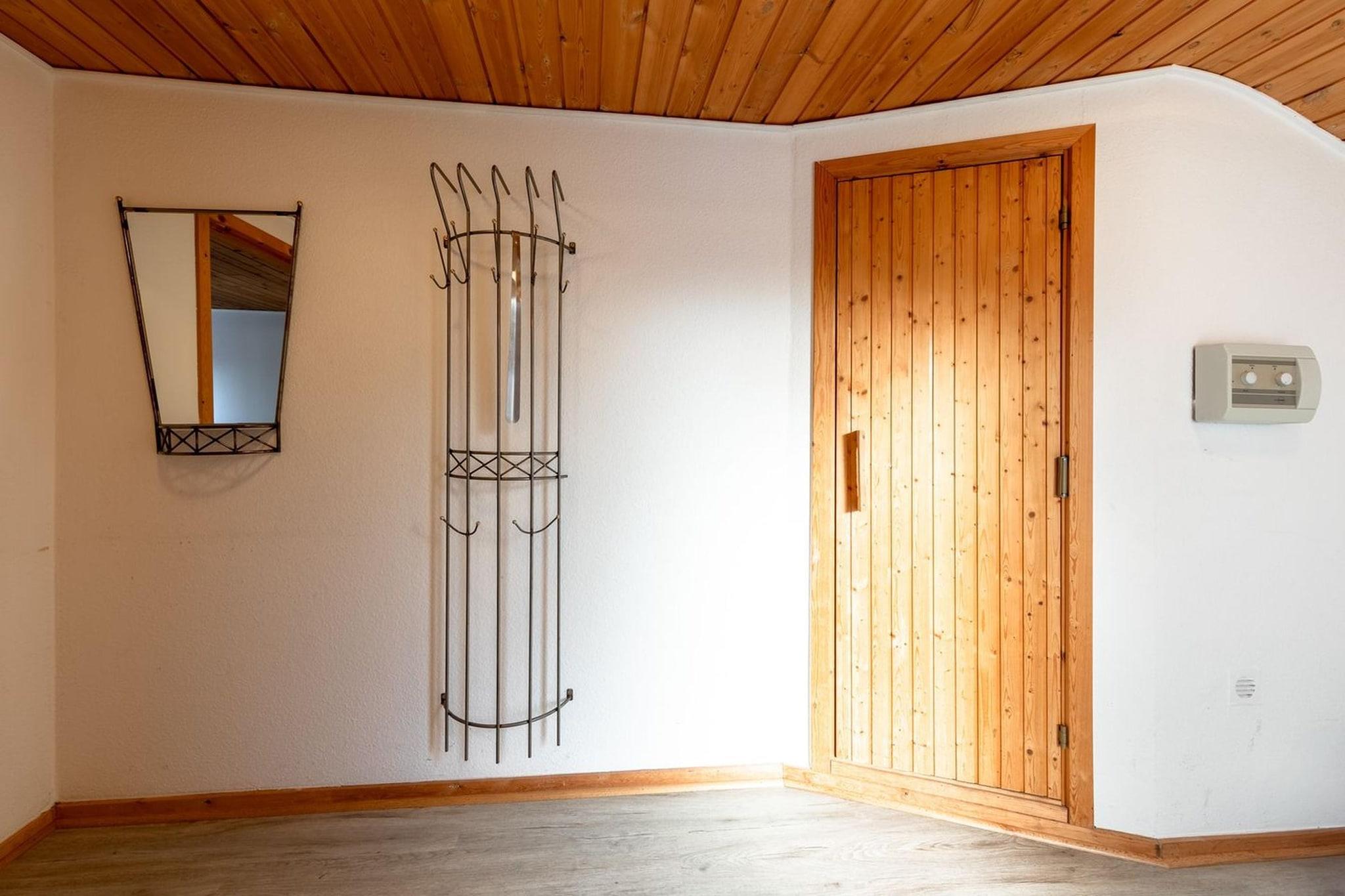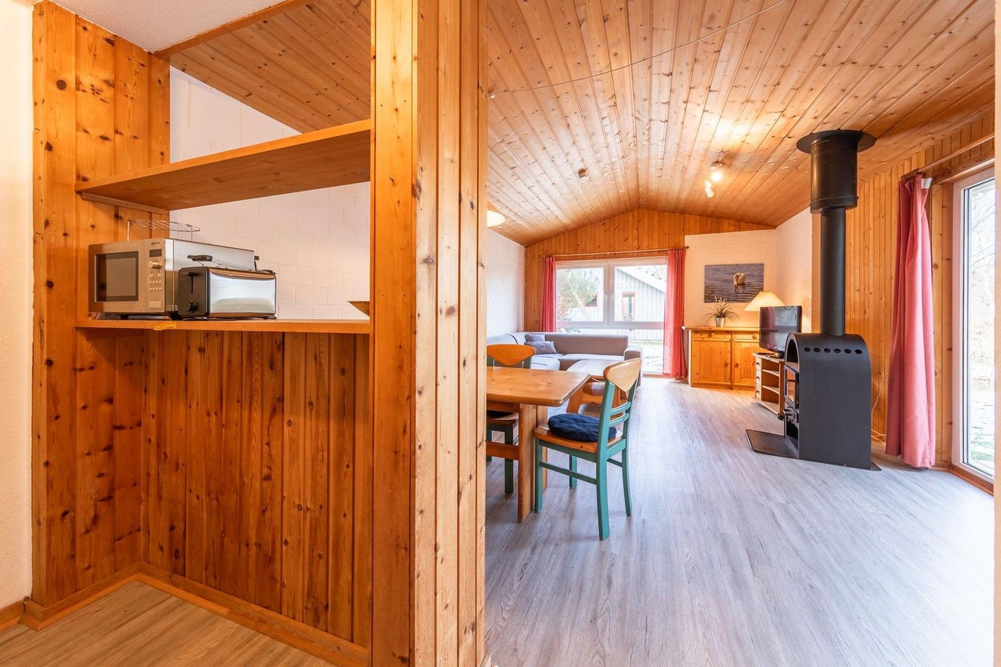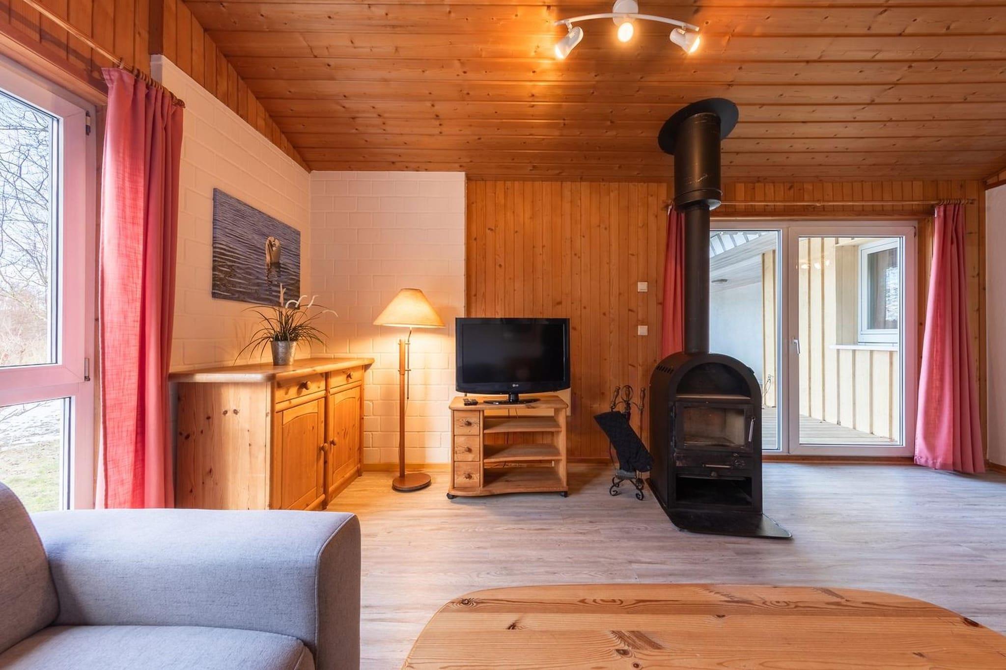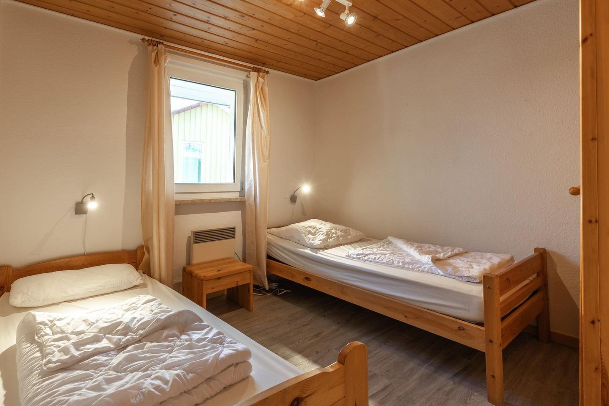 Parterre: (Küche(Esstisch, Kochplatte, Wasserkocher, Toaster, Kaffeemaschine, Backofen, Spülmaschine, Kühlschrank(+ Gefrierfach)), Wohn/Esszimmer(TV(Satellit), Esstisch, Kaminofen, Sitzecke), Schlafzimmer(Doppelbett), Schlafzimmer(Einzelbett, Einzelbett), Badezimmer(Dusche, Sauna(alleinige Nutzung), Waschbecken, Toilette), Abstellraum) Trockner(Gemeinschaftliche Nutzung mit anderen Gästen, gegen Gebühr), Waschmaschine(Gemeinschaftliche Nutzung mit anderen Gästen, gegen Gebühr), Heizung(elektrisch), Terrasse, Garten, Gartenmöbel, Parkplatz, Hochstuhl, Babybett (kostenpflichtig), Handtücher/Bettwäsche (extra Gebühr)