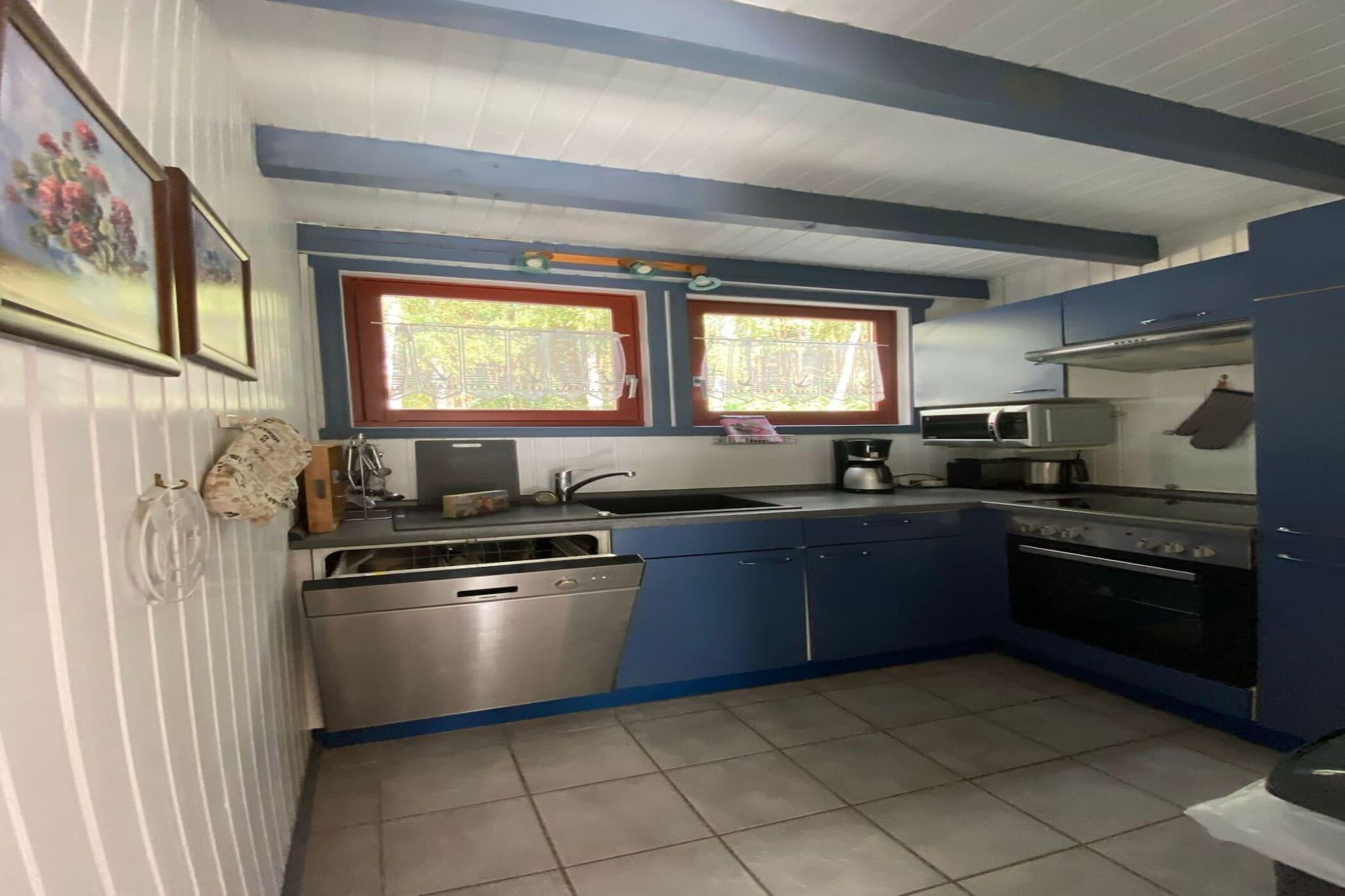 Parterre: (Wohnzimmer(TV(Satellit), Kaminofen, Sitzecke), Küche(Esstisch, Kochplatte, Wasserkocher, Toaster, Kaffeemaschine, Backofen, Mikrowelle, Kühlschrank(+ Gefrierfach)), Schlafzimmer(Doppelbett), Badezimmer(Dusche, Sauna(alleinige Nutzung), Waschbecken, Toilette), Abstellraum) In der 1. Etage: (Schlafzimmer(Einzelbett, Einzelbett), Empore(Französisches Bett)) Trockner(Gemeinschaftliche Nutzung mit anderen Gästen, gegen Gebühr), Waschmaschine, Heizung(elektrisch), Terrasse(überdacht), Garten, Gartenmöbel, Liegen, Grill(Holzkohle), Parkplatz, Pool(Gemeinschaftliche Nutzung mit anderen Gästen, gegen Gebühr), Hochstuhl, Babybett (kostenpflichtig), Handtücher/Bettwäsche (extra Gebühr)