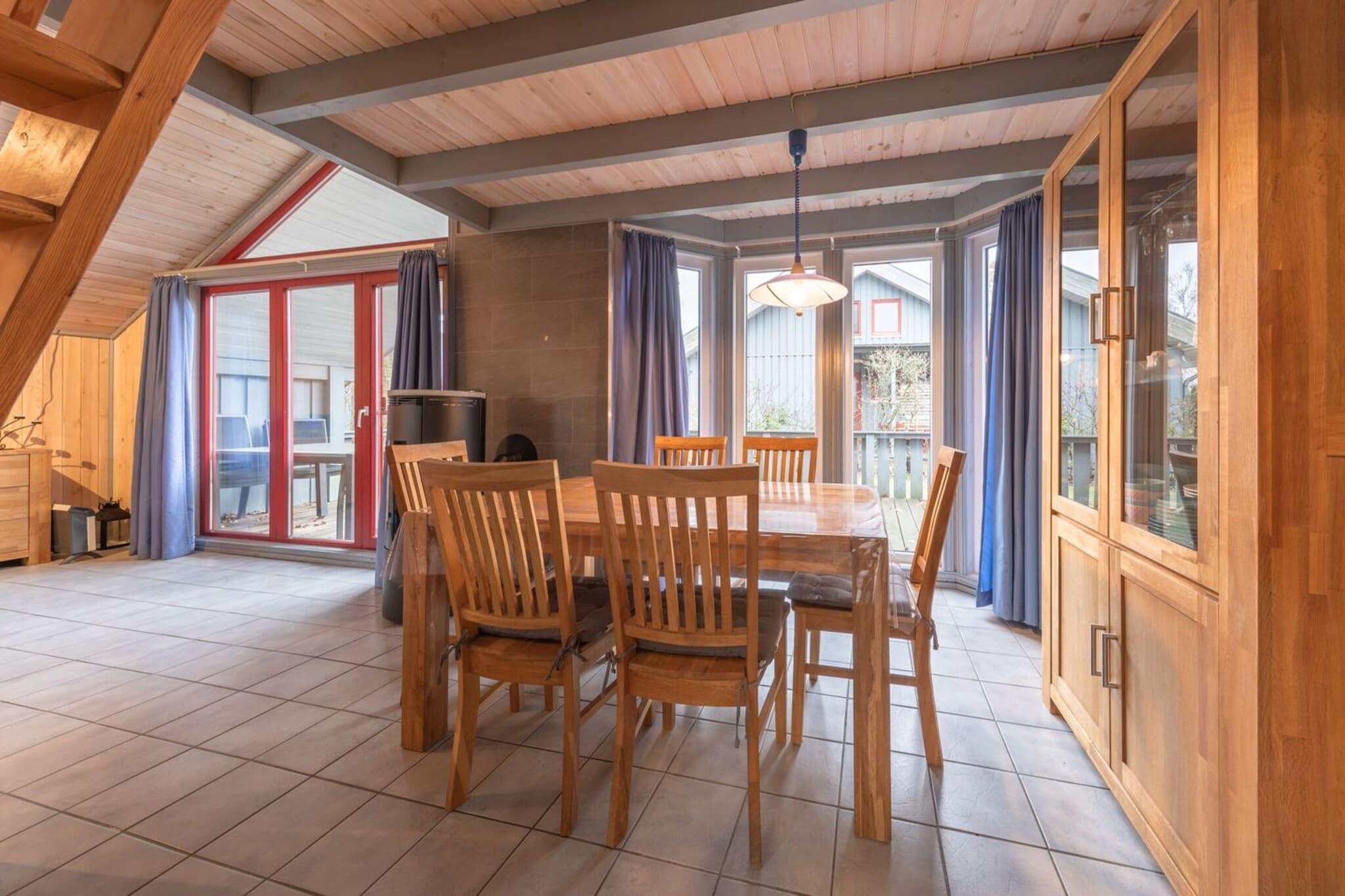 Parterre: (Wohnzimmer(TV(Satellit), Kaminofen, Sitzecke), Küche(Esstisch, Kochplatte, Wasserkocher, Toaster, Kaffeemaschine, Backofen, Mikrowelle, Kühlschrank(+ Gefrierfach)), Schlafzimmer(Doppelbett), Badezimmer(Badewanne, Dusche, Sauna(alleinige Nutzung), Waschbecken, Toilette), Abstellraum) In der 1. Etage: (Schlafzimmer(Einzelbett, Einzelbett), Galerieschlafzimmer(Französisches Bett)) Trockner(Gemeinschaftliche Nutzung mit anderen Gästen, gegen Gebühr), Waschmaschine(Gemeinschaftliche Nutzung mit anderen Gästen, gegen Gebühr), Heizung(elektrisch), Terrasse(überdacht), Garten, Gartenmöbel, Liegen, Parkplatz, Pool(Gemeinschaftliche Nutzung mit anderen Gästen, gegen Gebühr), Hochstuhl, Babybett (kostenpflichtig), Handtücher/Bettwäsche (extra Gebühr)