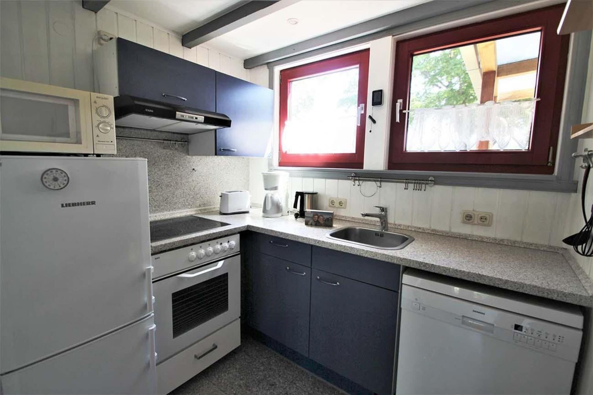 Parterre: (Wohnzimmer(TV(Satellit), Kaminofen, Sitzecke), Küche(Esstisch, Kochplatte, Wasserkocher, Toaster, Kaffeemaschine, Backofen, Mikrowelle, Kühlschrank(+ Gefrierfach)), Schlafzimmer(Doppelbett), Badezimmer(Badewanne, Dusche, Sauna(alleinige Nutzung), Waschbecken, Toilette), Abstellraum) In der 1. Etage: (Schlafzimmer(Einzelbett, Einzelbett), Galerieschlafzimmer(Französisches Bett)) Trockner(Gemeinschaftliche Nutzung mit anderen Gästen, gegen Gebühr), Waschmaschine(Gemeinschaftliche Nutzung mit anderen Gästen, gegen Gebühr), Heizung(elektrisch), Terrasse(überdacht), Garten, Gartenmöbel, Liegen, Parkplatz, Pool(Gemeinschaftliche Nutzung mit anderen Gästen, gegen Gebühr), Hochstuhl, Babybett (kostenpflichtig), Handtücher/Bettwäsche (extra Gebühr)