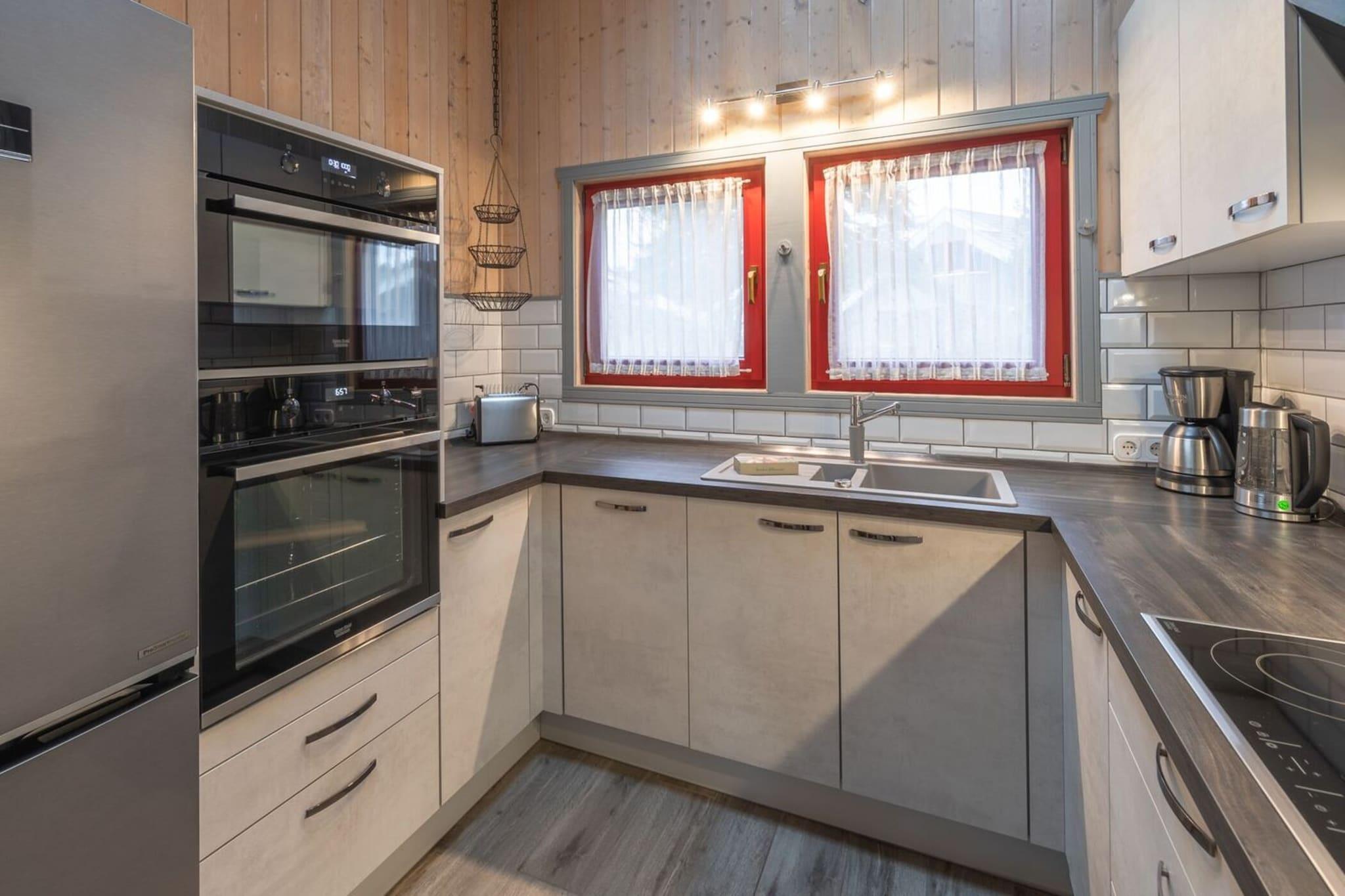 Parterre: (offene Küche(Kochplatte(4 Kochplatten, elektrisch), Wasserkocher, Toaster, Kaffeemaschine, Backofen, Mikrowelle, Spülmaschine, Kühlschrank(+ Gefrierfach)), Wohn/Esszimmer(TV(Satellit), Esstisch, Kaminofen, Sitzecke), Schlafzimmer(Einzelbett, Einzelbett), Schlafzimmer(Doppelbett), Badezimmer(Whirlwanne, Dusche, Sauna(alleinige Nutzung), Waschbecken, Toilette), Abstellraum) Trockner(Gemeinschaftliche Nutzung mit anderen Gästen, gegen Gebühr), Waschmaschine(Gemeinschaftliche Nutzung mit anderen Gästen, gegen Gebühr), Heizung(elektrisch), Terrasse, Garten, Gartenmöbel, Liegen, Grill(Holzkohle), Parkplatz, Pool(Gemeinschaftliche Nutzung mit anderen Gästen, gegen Gebühr), Hochstuhl, Babybett (kostenpflichtig), Handtücher/Bettwäsche (extra Gebühr)