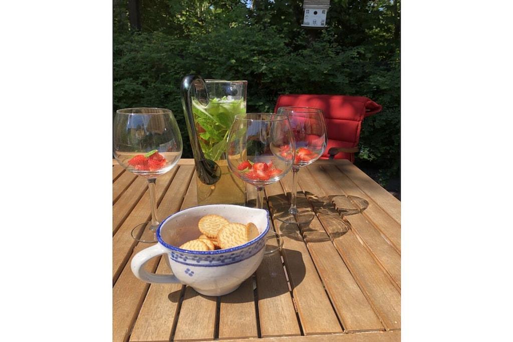 Parterre: (Eingangshalle(, Herd), Wohnzimmer(TV), Esszimmer(Esstisch), Küche(Kochplatte, Backofen, Kühlschrank), Schlafzimmer(, , Doppelbett), Schlafzimmer(, Doppelbett), Badezimmer(, Toilette, Dusche, Waschbecken, Heizung)) , , Internet, Internet, Heizung, Garten(Zentraler Grill, Liegewiese, Gartenmöbel, Liegen), Parkplatz, Bügelbrett, Bügeleisen, Trockenschrank