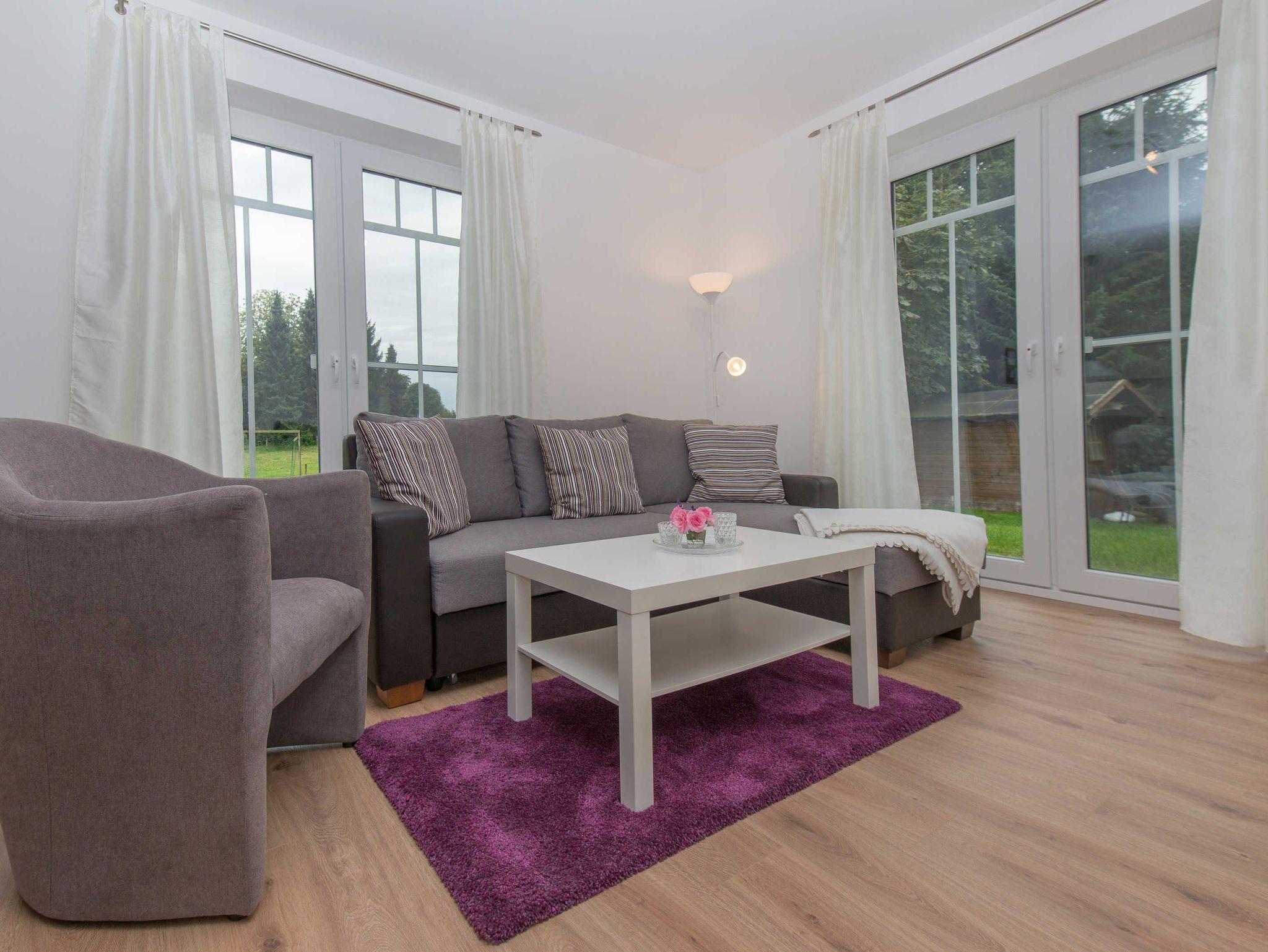 Die Wohnung Landliebe befindet sich im EG unseres Neubaus und bietet auf 60 qm Platz für bis zu vier Personen. Aufgeteilt ist sie in zwei Schlafzimmer (1 SZ mit Doppelbett, 1 SZ mit einem Einzelbett, das sich zu einem vollwertigen Doppelbett ausziehen lässt), einem Wohn/Essbereich mit komplett ausgestatteter Küchenzeile, Dusche/WC, Abstellraum und Terrasse. Diese Wohnung ist barrierefrei.
