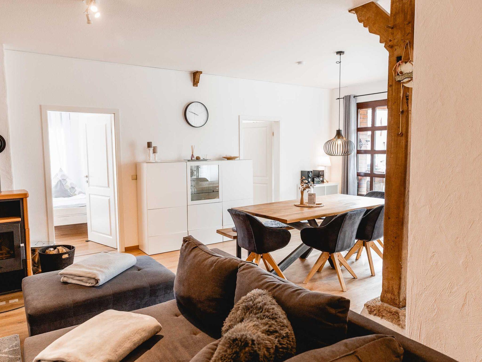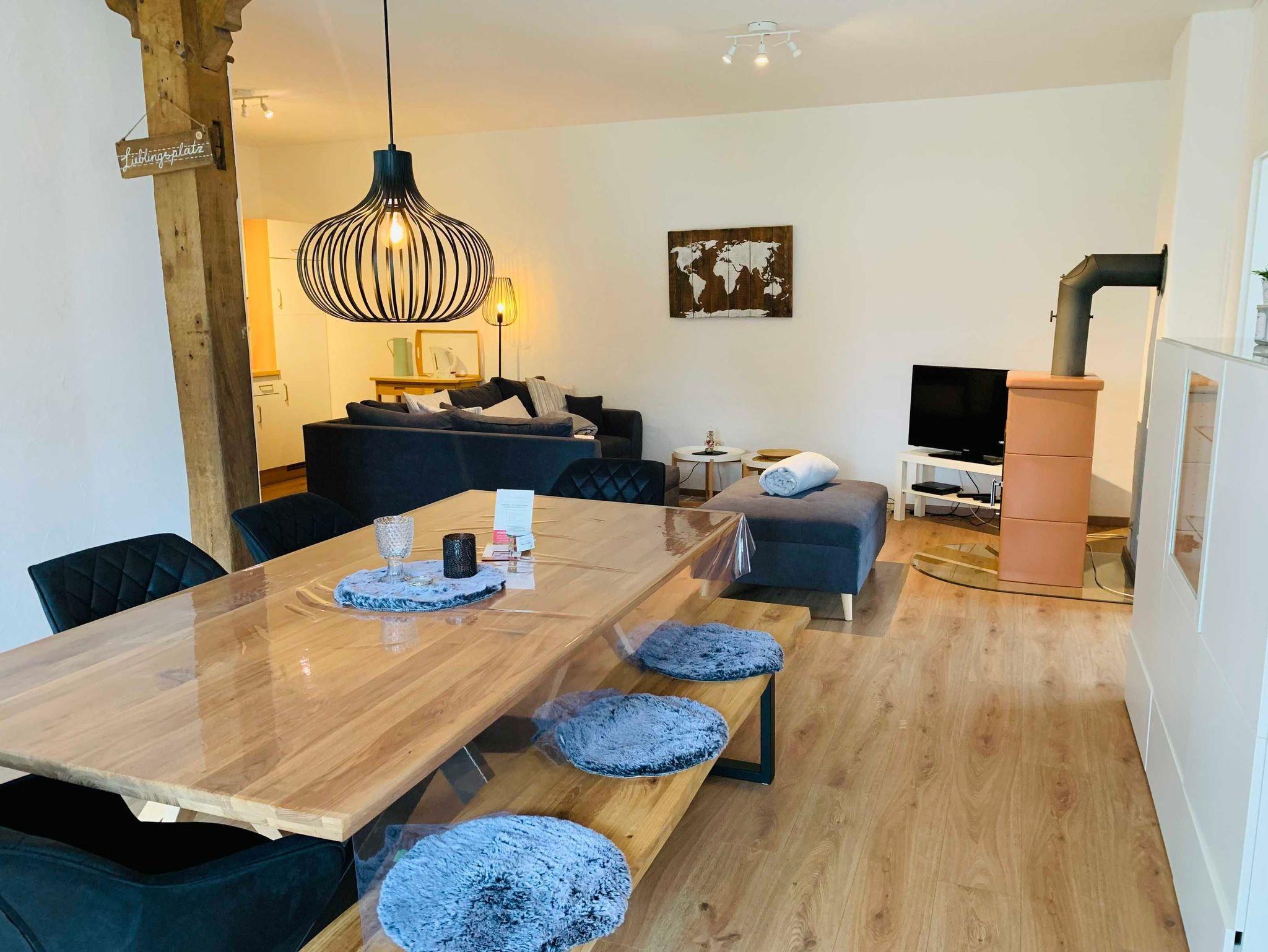 Die Wohnung Hamme befindet sich im EG unseres Haupthauses und bietet auf 80 qm Platz für bis zu vier Personen. Aufgeteilt ist die Wohnung in zwei Schlafzimmer (1 SZ mit Doppelbett, 1 SZ mit zwei Einzelbetten), einem großen Wohn/Essbereich mit komplett ausgestatteter Küchenzeile und Kaminofen, WC und Dusche mit Fußbodenheizung und einer Terrasse.