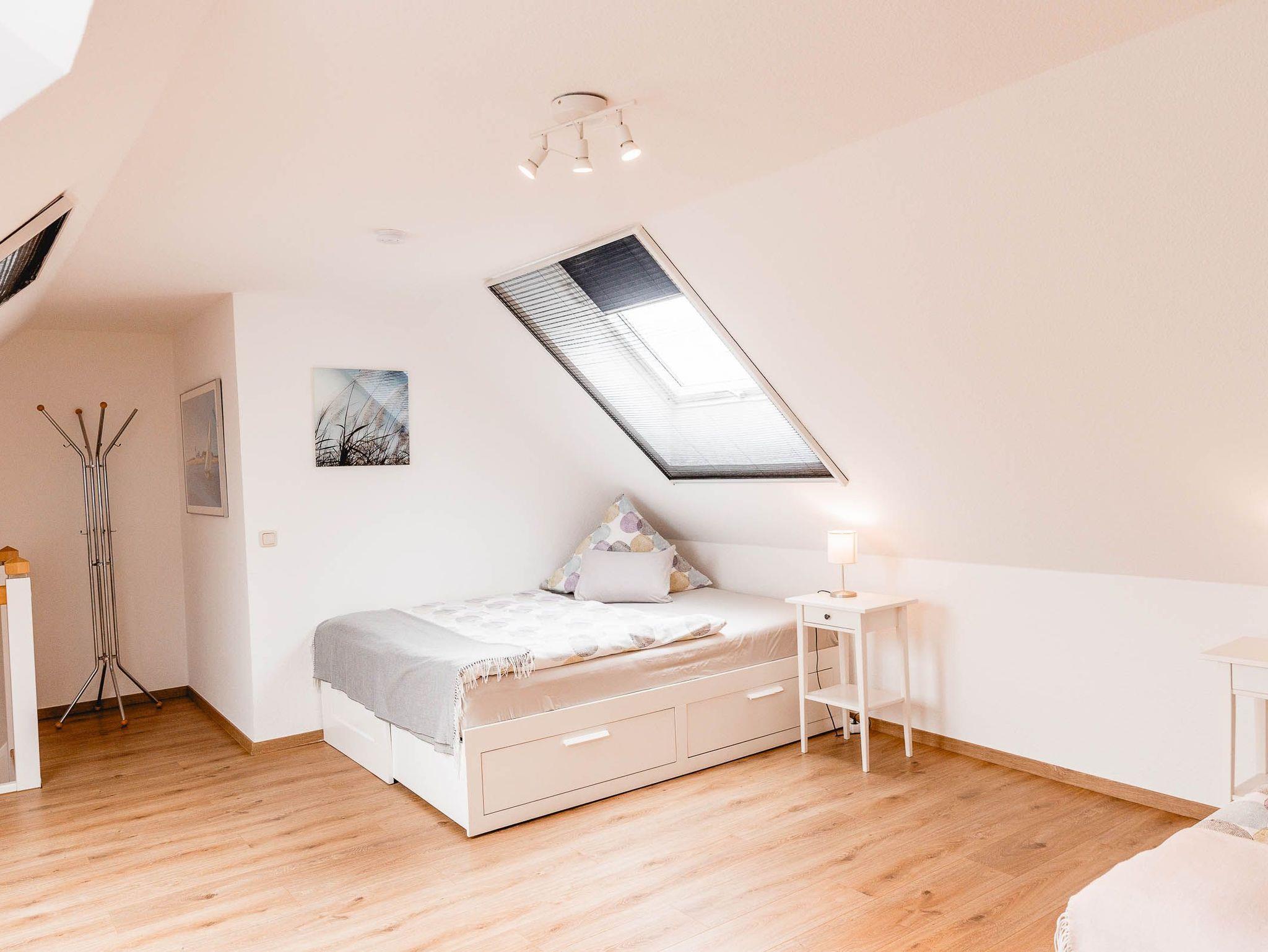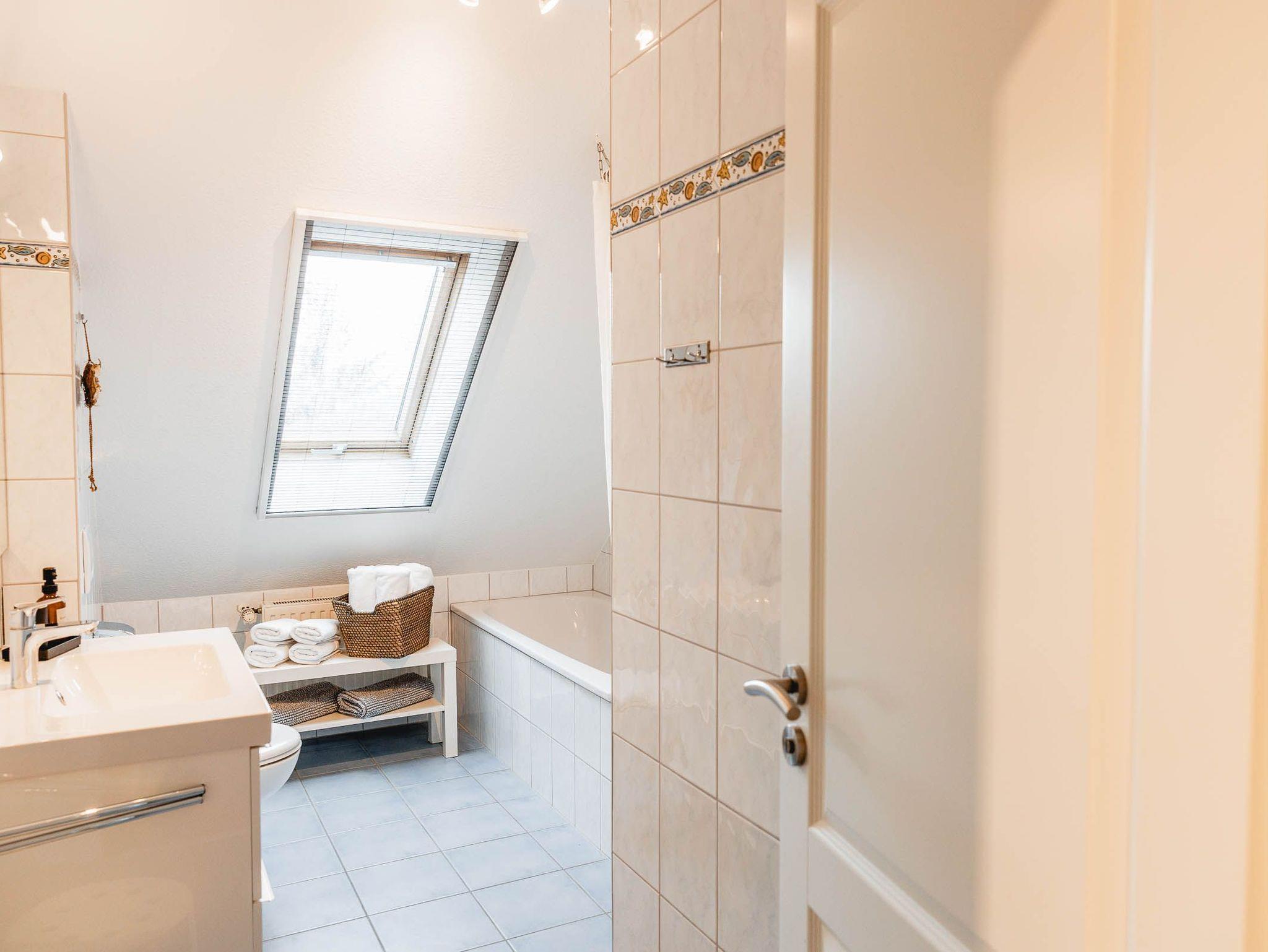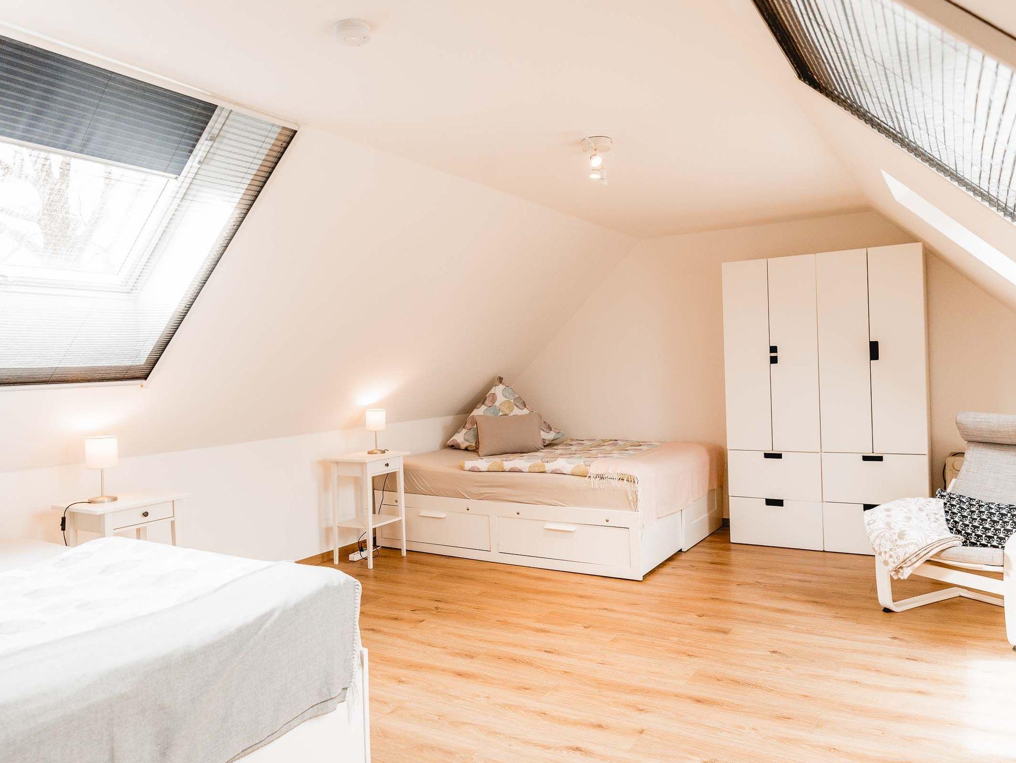 Die Wohnung Wörpe befindet sich im OG unseres Haupthauses und bietet auf 80 qm Platz für bis zu sechs Personen. Aufgeteilt ist die Wohnung in zwei Schlafzimmer (1 SZ mit Doppelbett und 1 SZ mit zwei Einzelbetten, die sich jeweils zu einem vollständigen Doppelbett ausziehen lassen), einem großen Wohn/Essbereich mit komplett ausgestatteter Küchenzeile, einem Bad mit Tageslicht und einem Abstellraum.