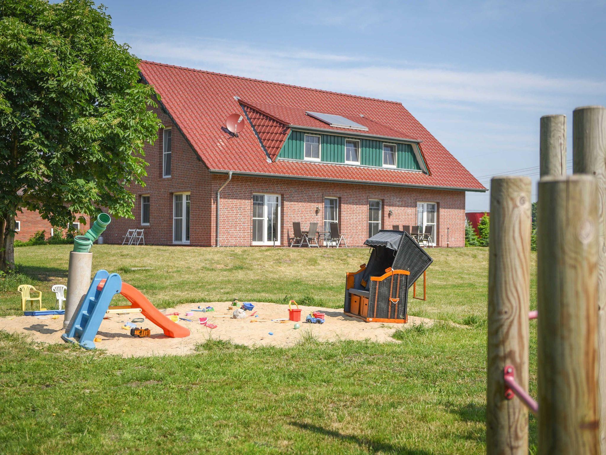 Auf unserem großzügigen Hofgelände gibt es verschiedene Sitzgelegenheiten, eine Grillhütte sowie eine Feuerstelle, verschiedene Spiel- und Fahrgeräte für Kinder und einen Spielboden.