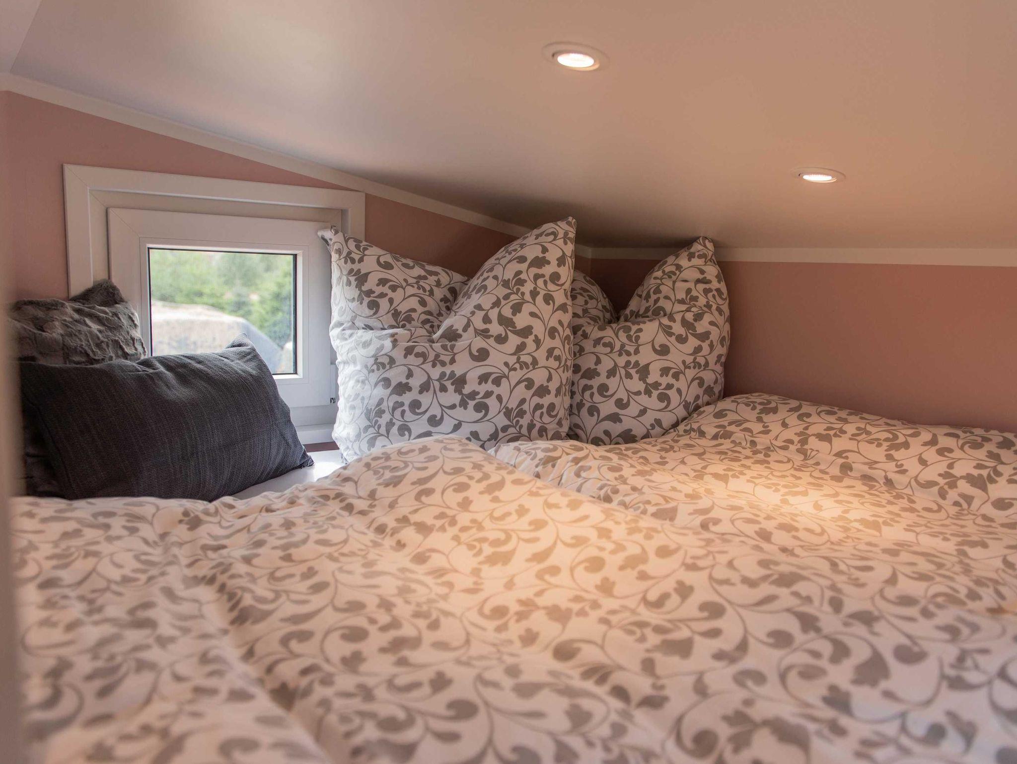 • Behagliche Schlafempore mit komfortablem Bett (160 x 200 cm), erreichbar über eine Treppe