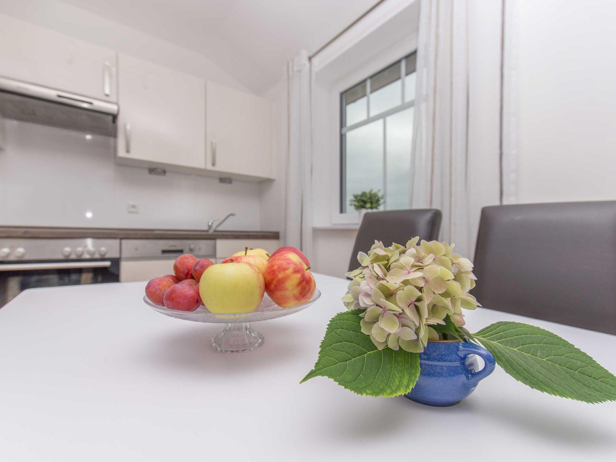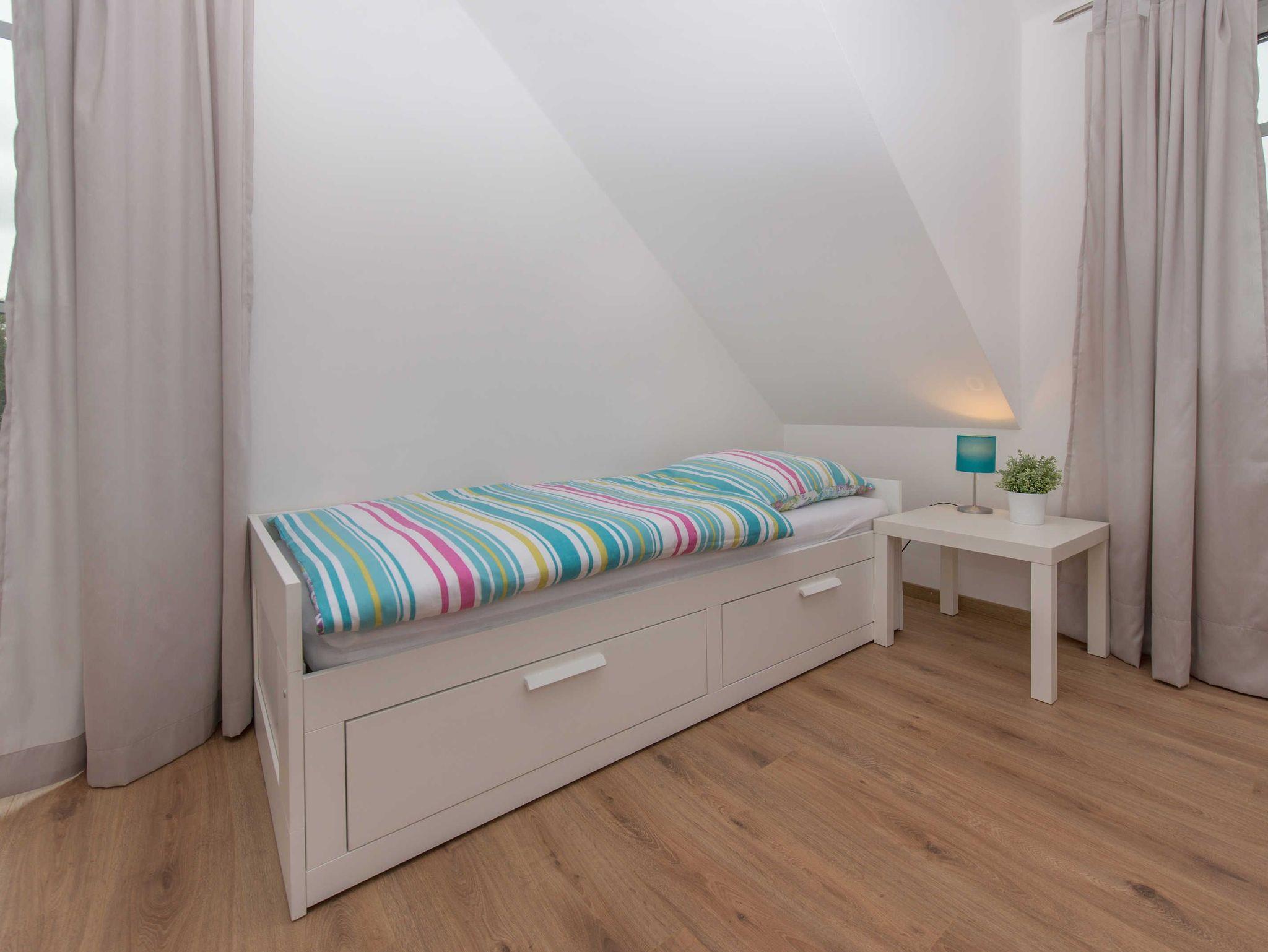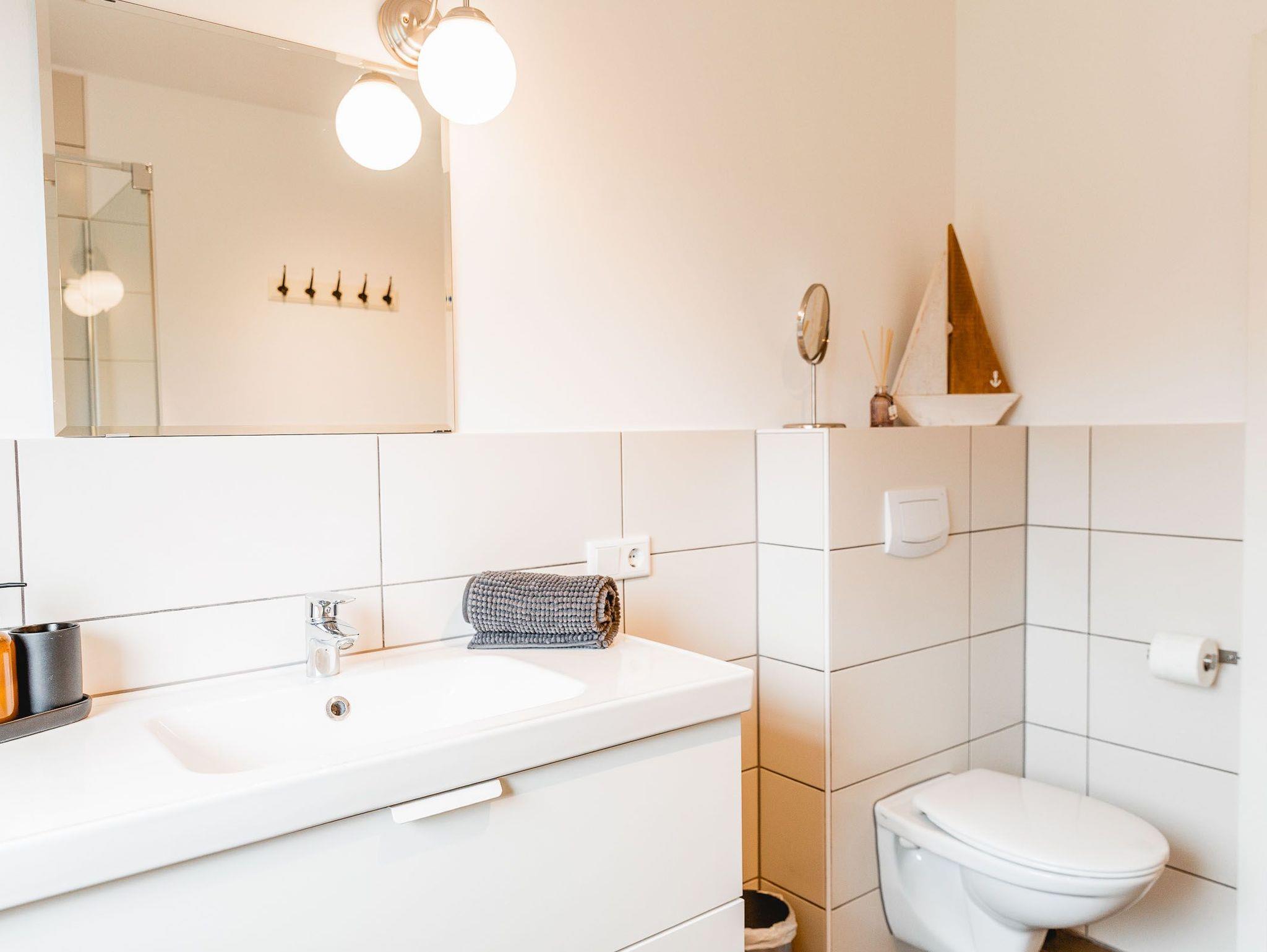 Die Wohnung Hofperle befindet sich im OG unseres Neubaus und bietet auf 90 qm Platz für bis zu sechs Personen. Sie ist aufgeteilt in drei Schlafzimmer (jeweils mit Doppelbett, ein SZ mit Flachbild-TV), einem großen Wohn/Essbereich, Dusche/WC mit Tageslicht, separates WC und Abstellraum mit Waschmaschine.