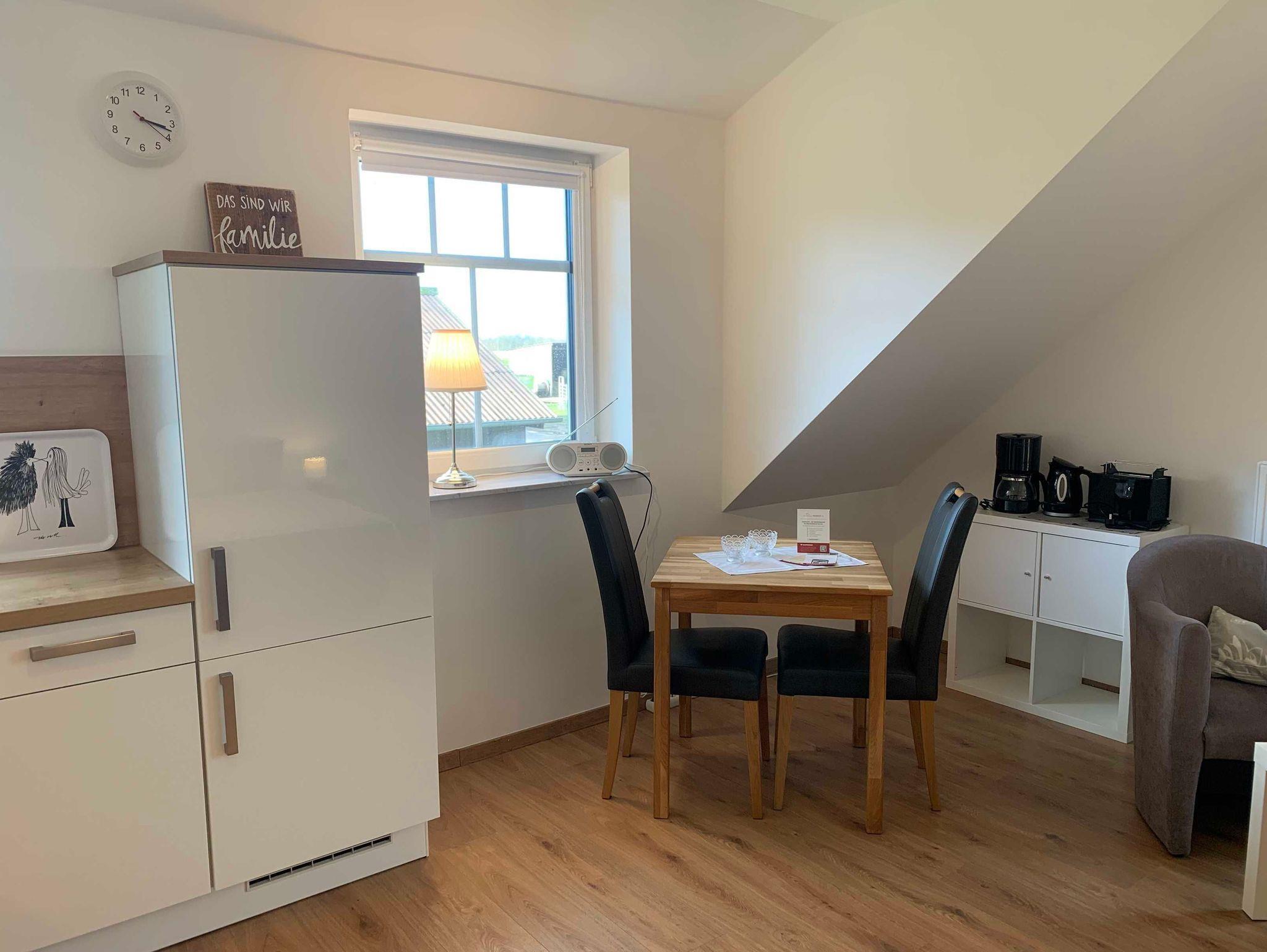 Das Apartemnt Schwalbennest befindet sich im OG unseres Neubaus und bietet auf 30 qm Platz für zwei Personen. Es besteht aus einem gemütlichen Wohn/Ess/Schlafbereich mit bequemer Schlafcouch (1,60 cm) sowie einem Bad mit Dusche und WC mit Tagesicht.