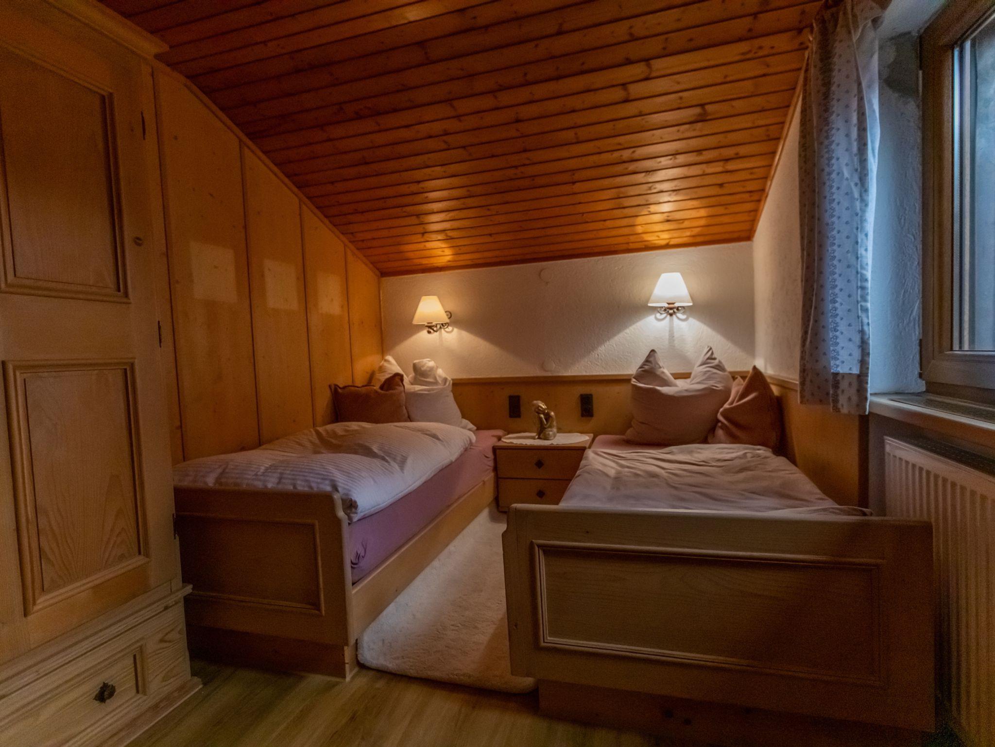 Die Wolke 7 verfügt über eine kleine, urige Eßküche und ein gemütliches Schlafzimmer mit 2 Einzelbetten.
