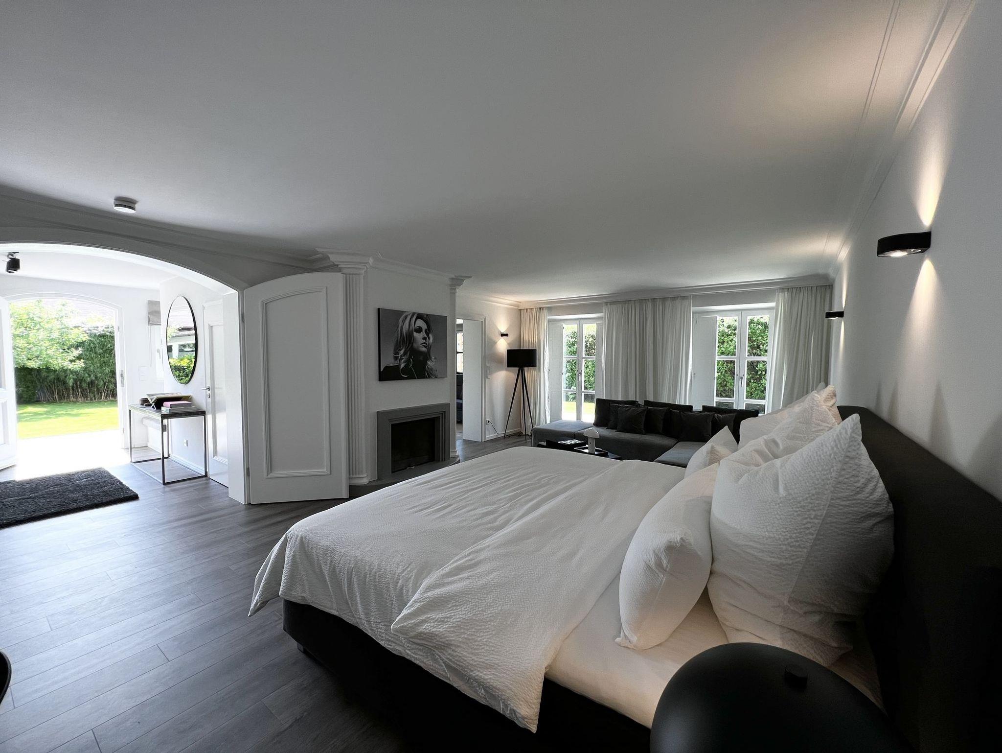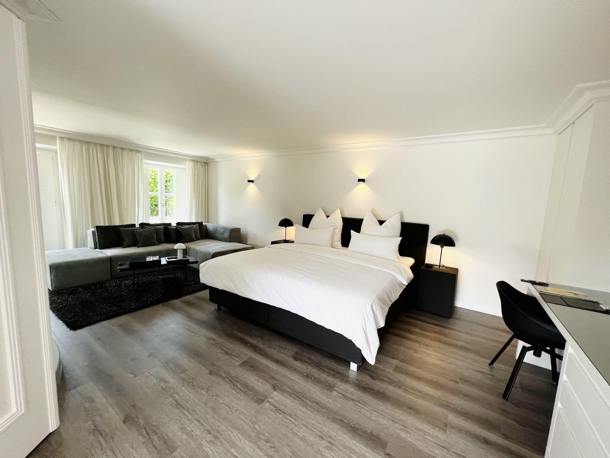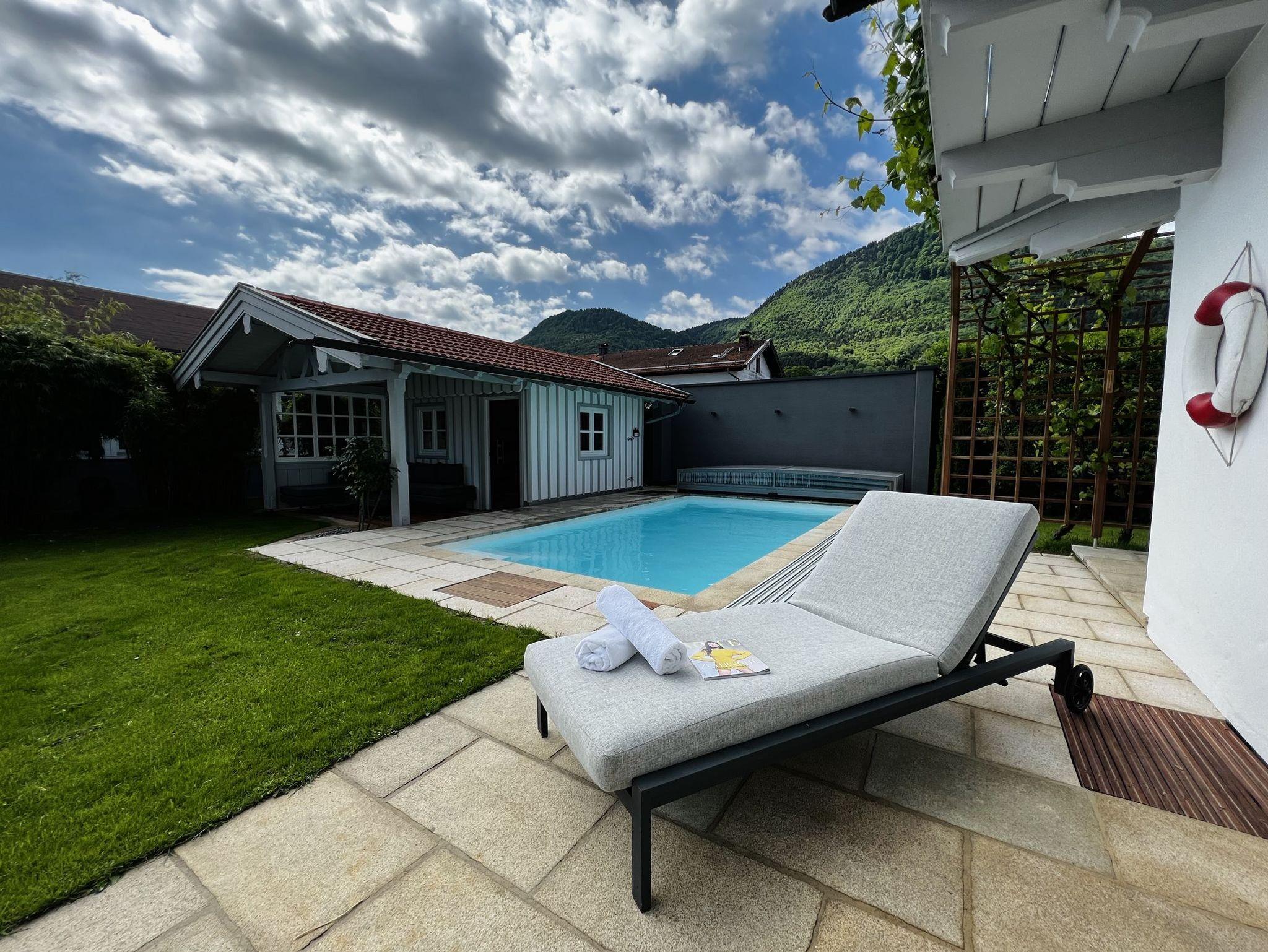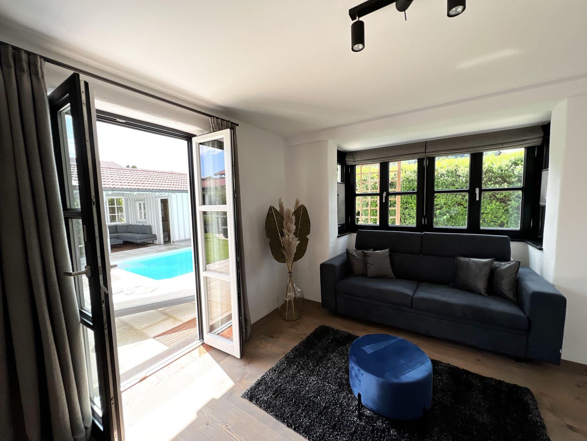 Herzlich willkommen in unserem Studio Nr. 1 Dieses 5***** Apartement befindet sich im Erdgeschoss und erstreckt sich über 110 Quadratmeter. Der große Garten mit viel Rasenfläche und einem überdachten Outdoor Essbereich lädt zum Verweilen und Entspannen ein. Bei Buchung dieses Studios ist die Nutzung des beheizten privaten Pools und der Birkensauna, welche stimmig in den Garten eingefügt ist inkludiert. In der Wohnung angekommen, finden Sie einen Essbereich und eine moderne Einbauküche. Neben einer Kühlgefrierkombination , Backofen, Dampfgarer, Induktionskochfeld mit Muldenlüfter, Wasserkocher, Spülmaschine, Toaster und Kaffeemaschine finden Sie in der Küche ausreichend Küchenutensilien und Geschirr. Schreiten Sie nun weiter, finden Sie ein separates Gäste-WC, sowie das große Badezimmer. Eine frei stehende Badewanne und Großraum-Regenwalddusche stimmen Sie entspannt auf Ihren Aufenthalt ein. Dieses Badezimmer verfügt über einen Doppelwaschtisch. Bei jeder Buchung sind Handtücher, Bademäntel und Schlappen enthalten. Zudem sind unsere Studios mit natürlichen Pflegeprodukten von Valentina & Phillipa ausgestattet (Seife, Conditioner, Shampoo and Shower). Versteckt hinter einer Glasschiebetüre findet sich angebunden an das Badezimmer ein kleiner Hauwirtschaftsraum wieder. Ihnen steht eine Waschmaschine, Trockner, Bügelbrett, Bügeleisen, Staubsauger und Putzutensilien zur Verfügung. Begibt man sich nun zurück in den Eingangsbereich des Studios, so finden Sie geradeaus den Masterbedroom. Neben einem gemütlichen Kingsize Boxspringbett und einer großen Couch finden Sie hier einen TV, Lautsprecher via Bluetooth und geräumige Einbauschränke. Abgerundet wird dieses stimmige Raumkonzept durch einen Kamin.Angebunden an dieses Zimmer befindet sich das Gäste/Kinderzimmer. In unserer alten Bauernstube kann hier über eine Schlafcouch (separate Matratze) Platz für zwei Kinder oder einen weiteren Gast geschaffen werden. Auch hier findet sich ein alter Kamin wieder. Durch die Terrassentüre erreichen Sie direkt den Pool und den Garten. Versteckt unter dem Studio findet sich die historische Seele des Hauses wieder, unser Weinkeller. Erreichbar über eine Treppe im Eingangsbereich ist dieser bei jeder Buchung voll bestückt mit handverlesenen Weinen, Schaumweinen und Champagner. Jeder Gast darf sich hier gerne nach dem TRUST IN Konzept bedienen. Eine Eckbank im Weinkeller bietet die Möglichkeit hier zu essen und zu feiern. Parkplätze stehen direkt vor dem Studio zur Verfügung.Sprechen Sie uns bei Fragen gerne an und teilen Sie uns Ihre individuellen Wünsche vor der Buchung mit.Jeder Gast hat die Möglichkeit, verschiedene Zusatzleistungen gegen einen Aufpreis zu buchen. Unsere hauseigene Masseurin verwöhnt Sie gerne mit wohltuenden Massagen und Bädern. Unser Personal Trainer hilft Ihnen bei der Durchsetzung Ihrer körperlichen Ziele und zeigt Ihnen wirksame Übungen. Für besondere Karroserien bieten wir privat Parking in unserer beheizten und abgeschlossenen Garage. Auch bei Ihrer Freizeitplanung hier im wunderschönen Chiemgau unterstützen wir Sie gerne. Auf Anfrage kann ein Frauscher Allesio gechartert werden und eine geleitete Tour über den traumhaften Chiemsee Ihren Aufenthalt unvergesslich machen. Haustiere auf Anfrage! Bei Buchung vom 16.Oktober bis 23. Dezember ist der Aussenpool nicht zugänglich!!