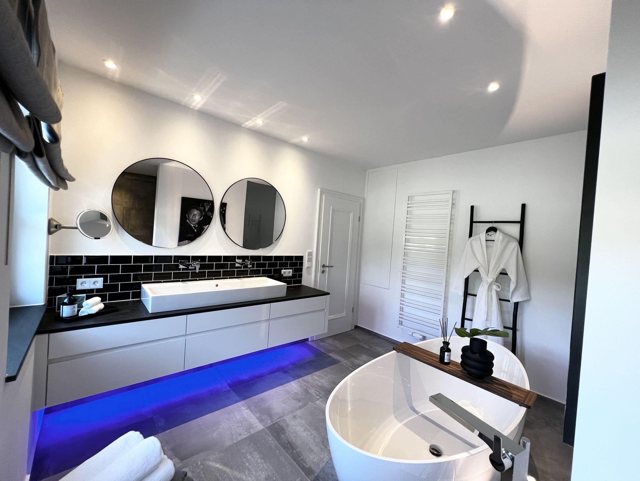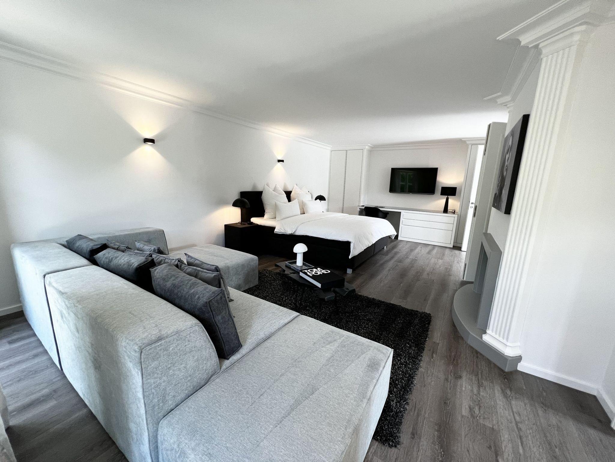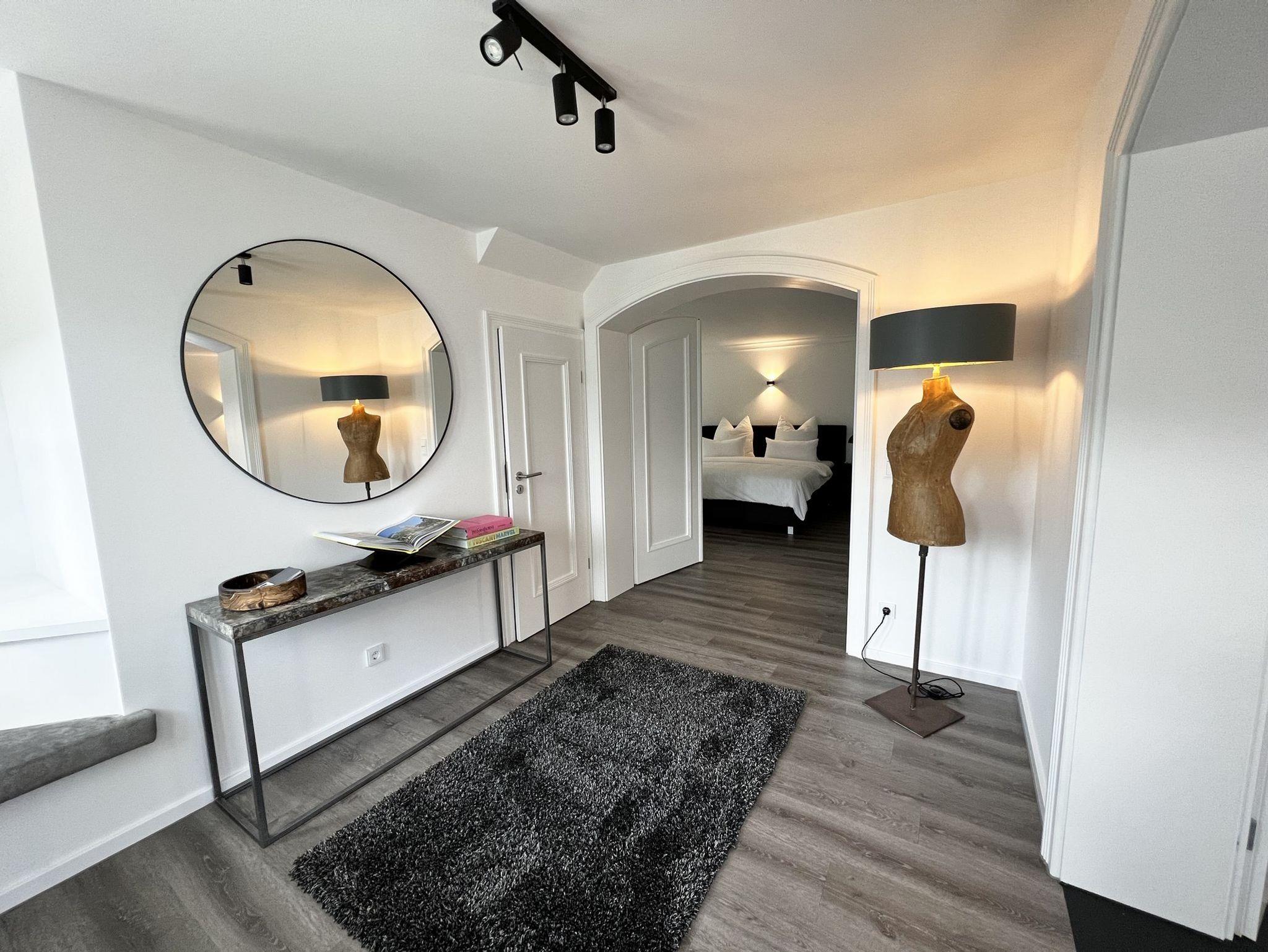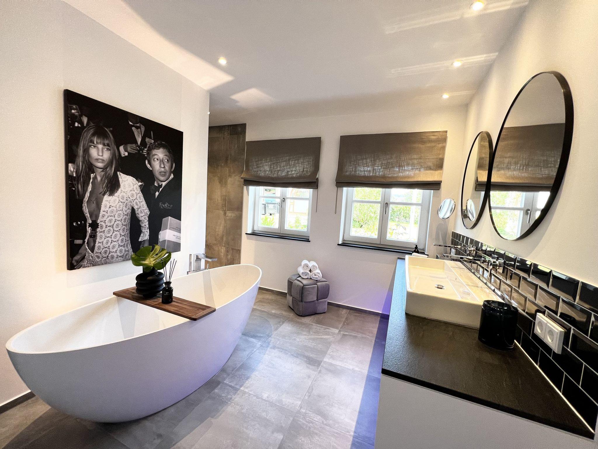 Herzlich willkommen in unserem Studio Nr. 1 Dieses 5***** Apartement befindet sich im Erdgeschoss und erstreckt sich über 110 Quadratmeter. Der große Garten mit viel Rasenfläche und einem überdachten Outdoor Essbereich lädt zum Verweilen und Entspannen ein. Bei Buchung dieses Studios ist die Nutzung des beheizten privaten Pools und der Birkensauna, welche stimmig in den Garten eingefügt ist inkludiert. In der Wohnung angekommen, finden Sie einen Essbereich und eine moderne Einbauküche. Neben einer Kühlgefrierkombination , Backofen, Dampfgarer, Induktionskochfeld mit Muldenlüfter, Wasserkocher, Spülmaschine, Toaster und Kaffeemaschine finden Sie in der Küche ausreichend Küchenutensilien und Geschirr. Schreiten Sie nun weiter, finden Sie ein separates Gäste-WC, sowie das große Badezimmer. Eine frei stehende Badewanne und Großraum-Regenwalddusche stimmen Sie entspannt auf Ihren Aufenthalt ein. Dieses Badezimmer verfügt über einen Doppelwaschtisch. Bei jeder Buchung sind Handtücher, Bademäntel und Schlappen enthalten. Zudem sind unsere Studios mit natürlichen Pflegeprodukten von Valentina & Phillipa ausgestattet (Seife, Conditioner, Shampoo and Shower). Versteckt hinter einer Glasschiebetüre findet sich angebunden an das Badezimmer ein kleiner Hauwirtschaftsraum wieder. Ihnen steht eine Waschmaschine, Trockner, Bügelbrett, Bügeleisen, Staubsauger und Putzutensilien zur Verfügung. Begibt man sich nun zurück in den Eingangsbereich des Studios, so finden Sie geradeaus den Masterbedroom. Neben einem gemütlichen Kingsize Boxspringbett und einer großen Couch finden Sie hier einen TV, Lautsprecher via Bluetooth und geräumige Einbauschränke. Abgerundet wird dieses stimmige Raumkonzept durch einen Kamin.Angebunden an dieses Zimmer befindet sich das Gäste/Kinderzimmer. In unserer alten Bauernstube kann hier über eine Schlafcouch (separate Matratze) Platz für zwei Kinder oder einen weiteren Gast geschaffen werden. Auch hier findet sich ein alter Kamin wieder. Durch die Terrassentüre erreichen Sie direkt den Pool und den Garten. Versteckt unter dem Studio findet sich die historische Seele des Hauses wieder, unser Weinkeller. Erreichbar über eine Treppe im Eingangsbereich ist dieser bei jeder Buchung voll bestückt mit handverlesenen Weinen, Schaumweinen und Champagner. Jeder Gast darf sich hier gerne nach dem TRUST IN Konzept bedienen. Eine Eckbank im Weinkeller bietet die Möglichkeit hier zu essen und zu feiern. Parkplätze stehen direkt vor dem Studio zur Verfügung.Sprechen Sie uns bei Fragen gerne an und teilen Sie uns Ihre individuellen Wünsche vor der Buchung mit.Jeder Gast hat die Möglichkeit, verschiedene Zusatzleistungen gegen einen Aufpreis zu buchen. Unsere hauseigene Masseurin verwöhnt Sie gerne mit wohltuenden Massagen und Bädern. Unser Personal Trainer hilft Ihnen bei der Durchsetzung Ihrer körperlichen Ziele und zeigt Ihnen wirksame Übungen. Für besondere Karroserien bieten wir privat Parking in unserer beheizten und abgeschlossenen Garage. Auch bei Ihrer Freizeitplanung hier im wunderschönen Chiemgau unterstützen wir Sie gerne. Auf Anfrage kann ein Frauscher Allesio gechartert werden und eine geleitete Tour über den traumhaften Chiemsee Ihren Aufenthalt unvergesslich machen. Haustiere auf Anfrage! Bei Buchung vom 16.Oktober bis 23. Dezember ist der Aussenpool nicht zugänglich!!