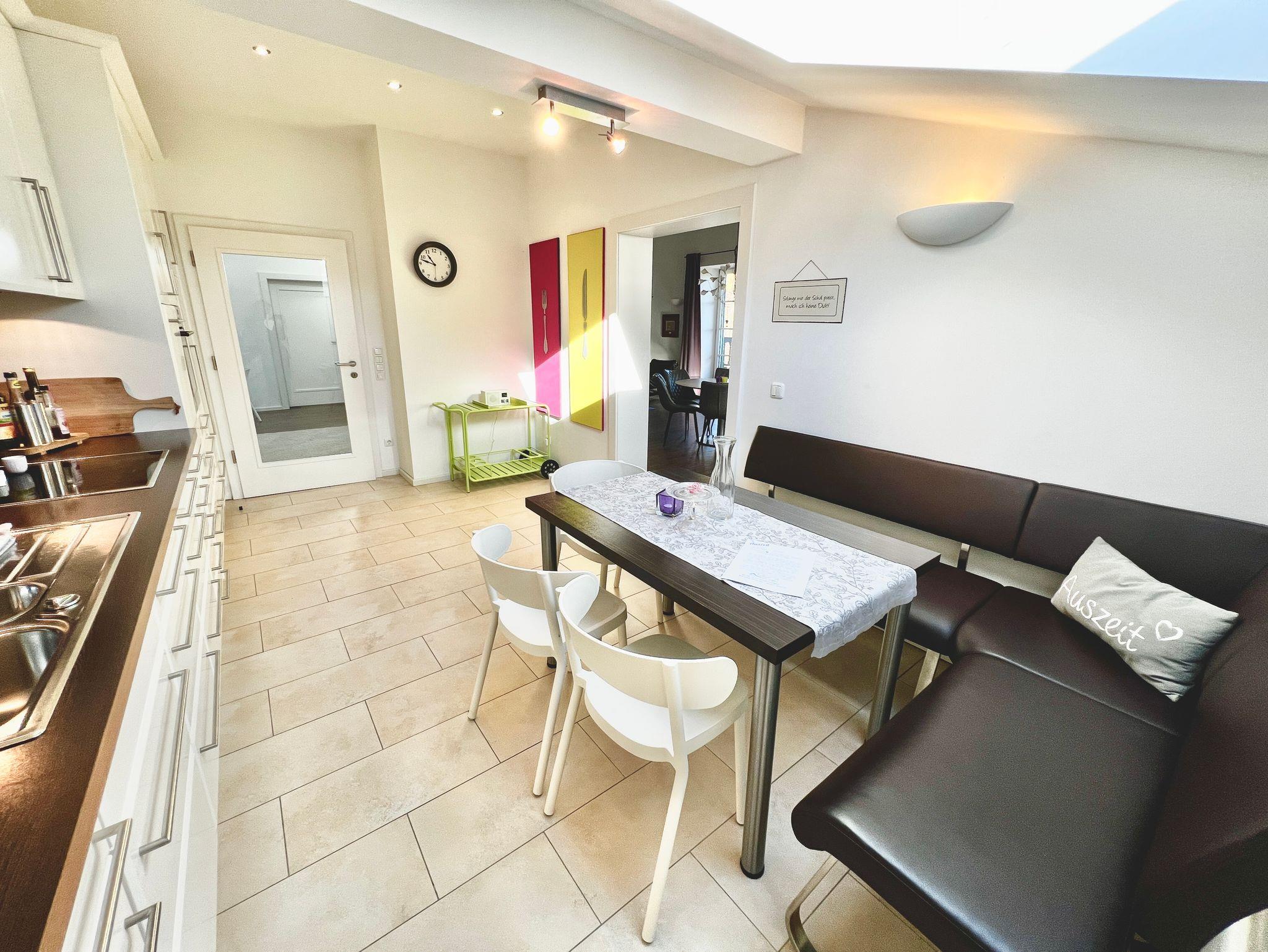 Die Küche mit gemütlicher Sitzecke ist mit Geschirrspüler, Kühlschrank, Backofen und Kaffemaschine, Wasserkocher... ausgestattet. Im Wohnzimmer findet Ihr eine große Couch mit TV, eine zusätzlichen Essbereich, Spielsachen und Gesellschaftsspiele. Wir bieten außerdem 3 Schlafzimmer mit TV, sowie 3 Badezimmer mit Dusche/WC und einer Badewanne.