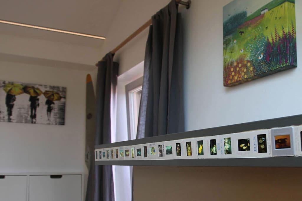 Neu gebaute Dachgeschoss Suite auf 100m2 Geschossfläche. Es erwarten Sie individuell gestaltete Räume mit fantastischem Blick bis ins tiroler Kaisergebirge. Wir haben uns vom Arosa Kitzbühel und Farrow and Ball inspirieren lassen. Geeignet für Pärchen junge Familien mit kleinem Kind, die eine gehobene, moderne Ausstattung sowie ein individuelles Design (Mischung aus rustikalem Hütten -und englischen Landhausstil) schätzen. Es steht eine gemütliche Fasssauna zur Verfügung. Die Küche ist klein, aber fein, ausgestattet mit einem Backofengrill/Mikrowelle und einer Spülmaschine.