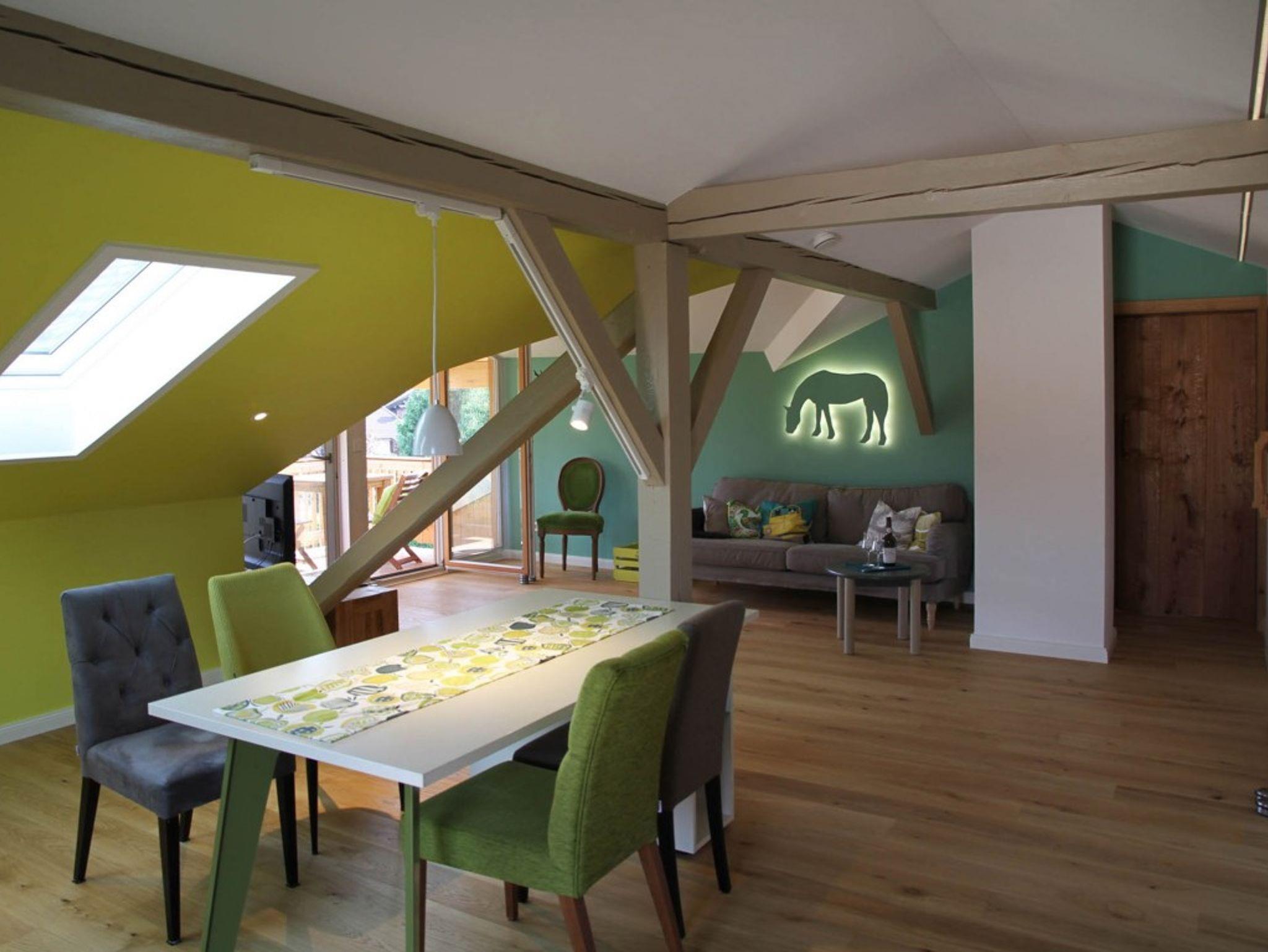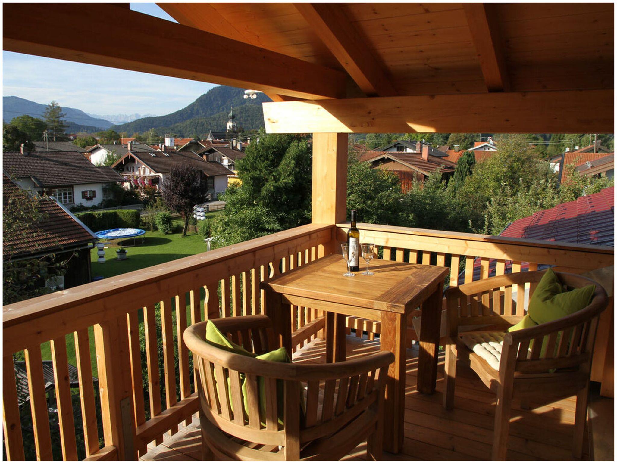 Ferienwohnung Villa sorglos Suite | Chiemgau Karte, Panorama Suite im Dachgeschoss 100qm mit Sauna-Fass im Garten