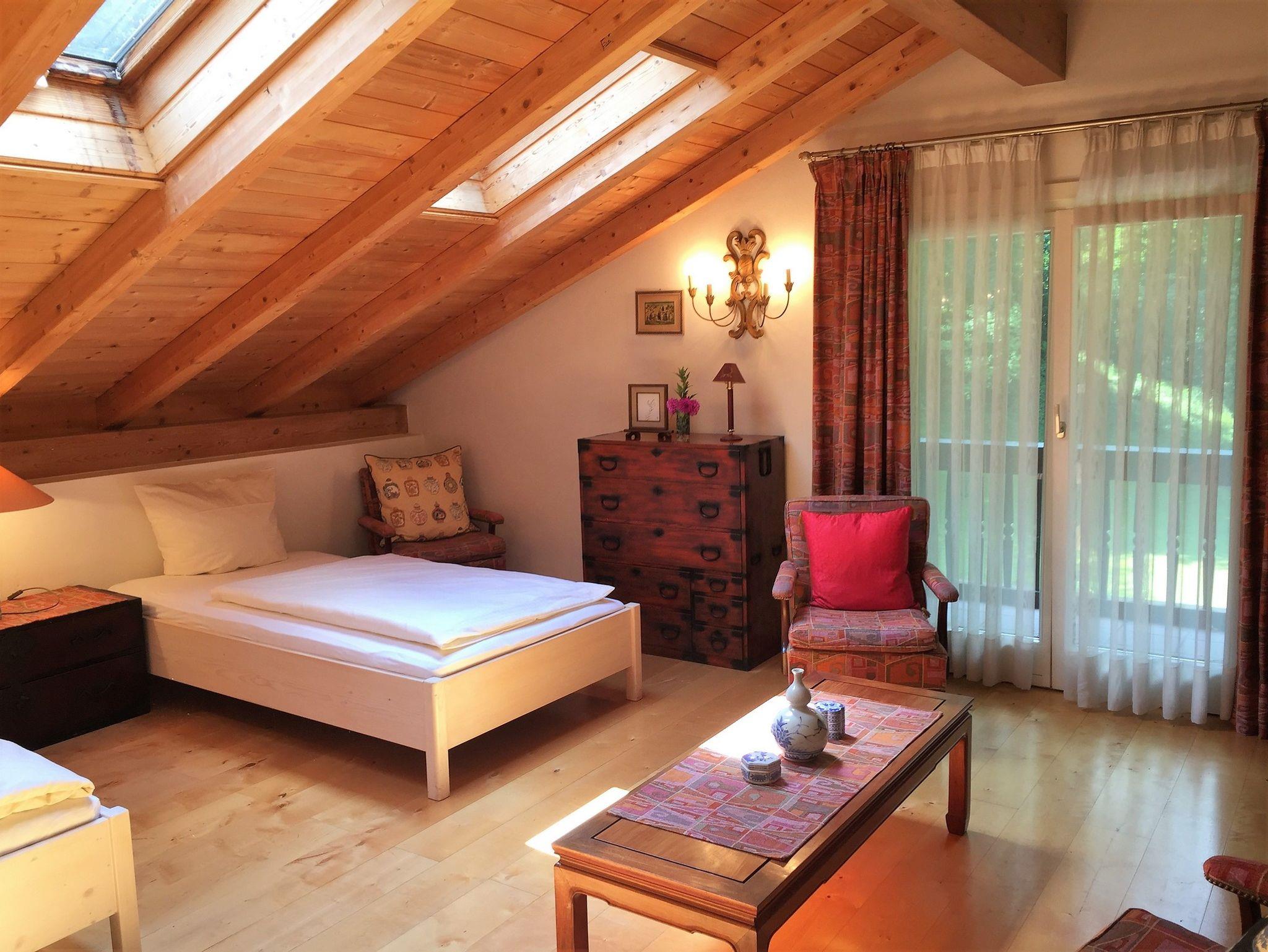 Im Herzen des Chiemgaus, zwischen Chiemsee und Kampenwand, befindet sich die Villa Sawallisch, das ehemalige Wohnhaus des Maestro sowie ein sehr großzügiges Gästehaus. Da insgesamt nur drei Suiten und zwei Ferienwohnungen zur Verfügung stehen, ist die Villa Sawallisch der ideale Ort für alle, die Ruhe, Entspannung und Natur suchen. Zahlreiche Antiquitäten, eine großzügige Bibliothek, viele Bilder und Erinnerungsgegenstände prägen die unvergleichliche Aura der Villa Sawallisch. Musikliebhaber werden die spürbare Nähe des großen Dirigenten zu schätzen wissen.Durch den vier Hektar großen Park, der allen Gästen zur Verfügung steht, führen Waldwege zu beschaulichen Plätzen, etwa zu einem kleinen Monopteros auf einem Hügel oder einer idyllischen Sitzgruppe am Teich. Überall ist Ruhe, Abgeschiedenheit, Natur und Großzügigkeit zu spüren. Und direkt am Westeingang zum Park der Villa Sawallisch befindet sich ein kleiner, naturbelassener Badesee!Vom Park aus führen Wanderwege zu wunderbaren Almhütten und auf Berggipfel, zum Beispiel auf die Kampenwand oder die r Ort Grassau mit allen Einkaufsmöglichkeiten, Restaurant's und Cafes ist zu Fuß in wenigen Minuten erreichbar.