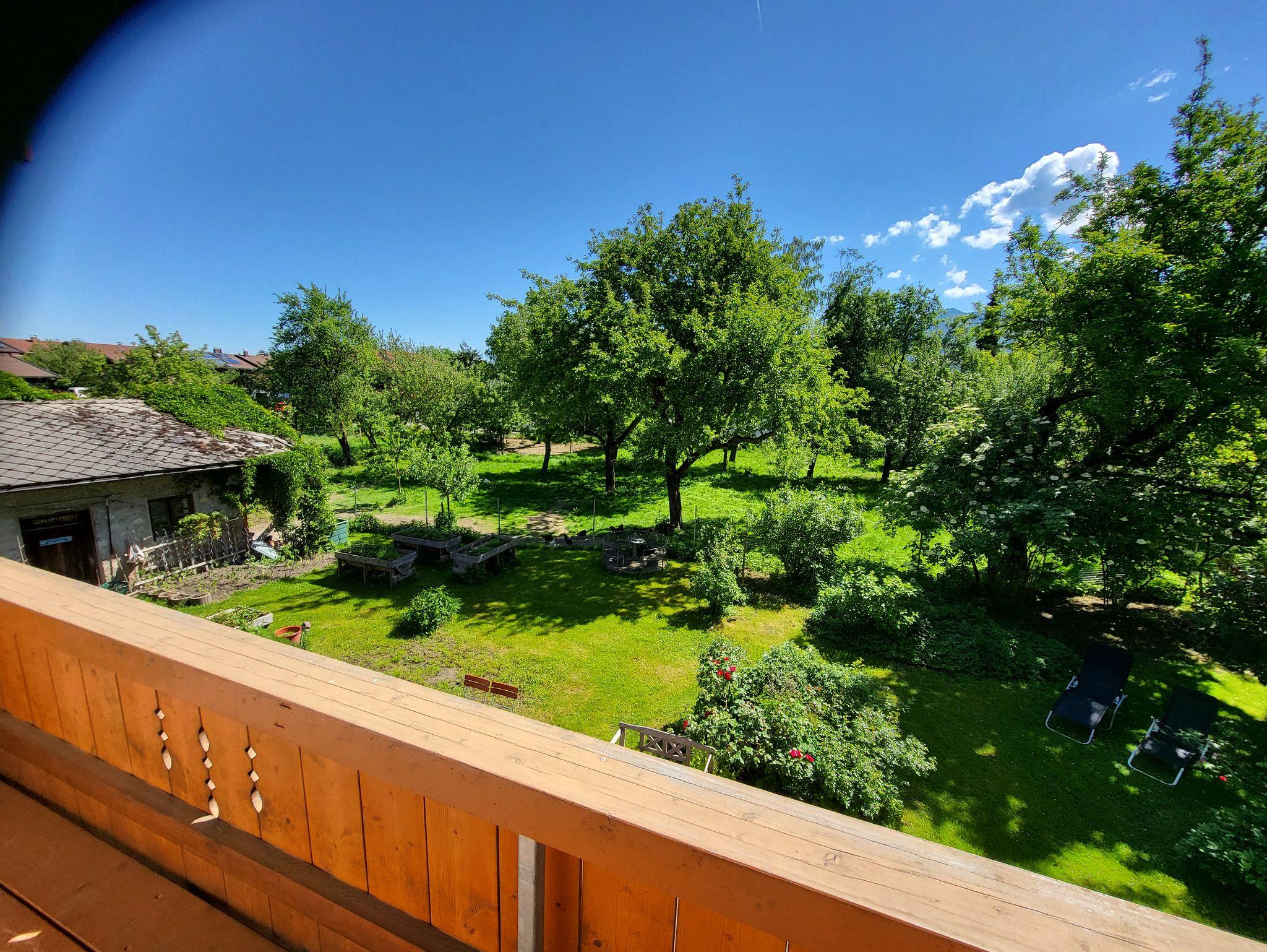 1 Ferienwohnung unter dem Dach im 2. Stock mit neuer großzügigen Wohnküche mit Balkon, kleinem Schlafzimmer und kleinem Bad mit DU/WC - ohne Frühstück - inkl. Chiemgaukarte -zuzügl. Kurtaxe