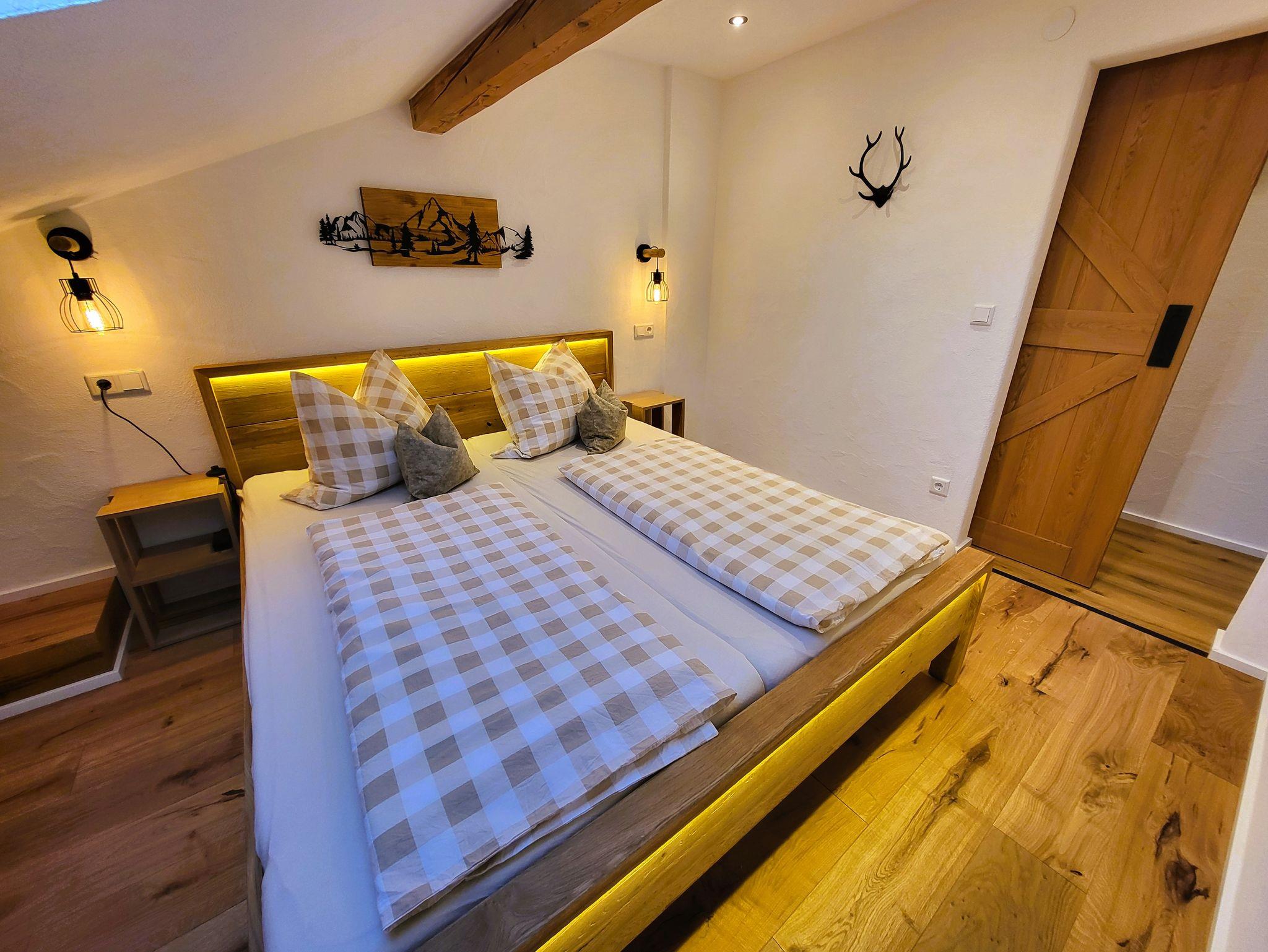 Die Ferienwohnung unter dem Dach ist mit einer großzügigen, gemütlichen Wohnküche im alpenländlichen modernen Stil. Ohne Frühstück!!!