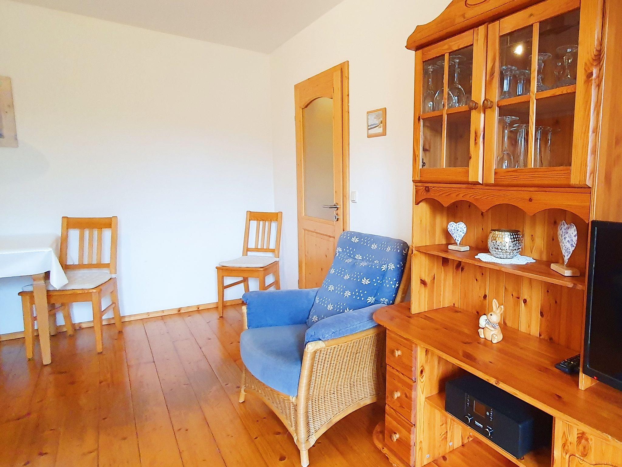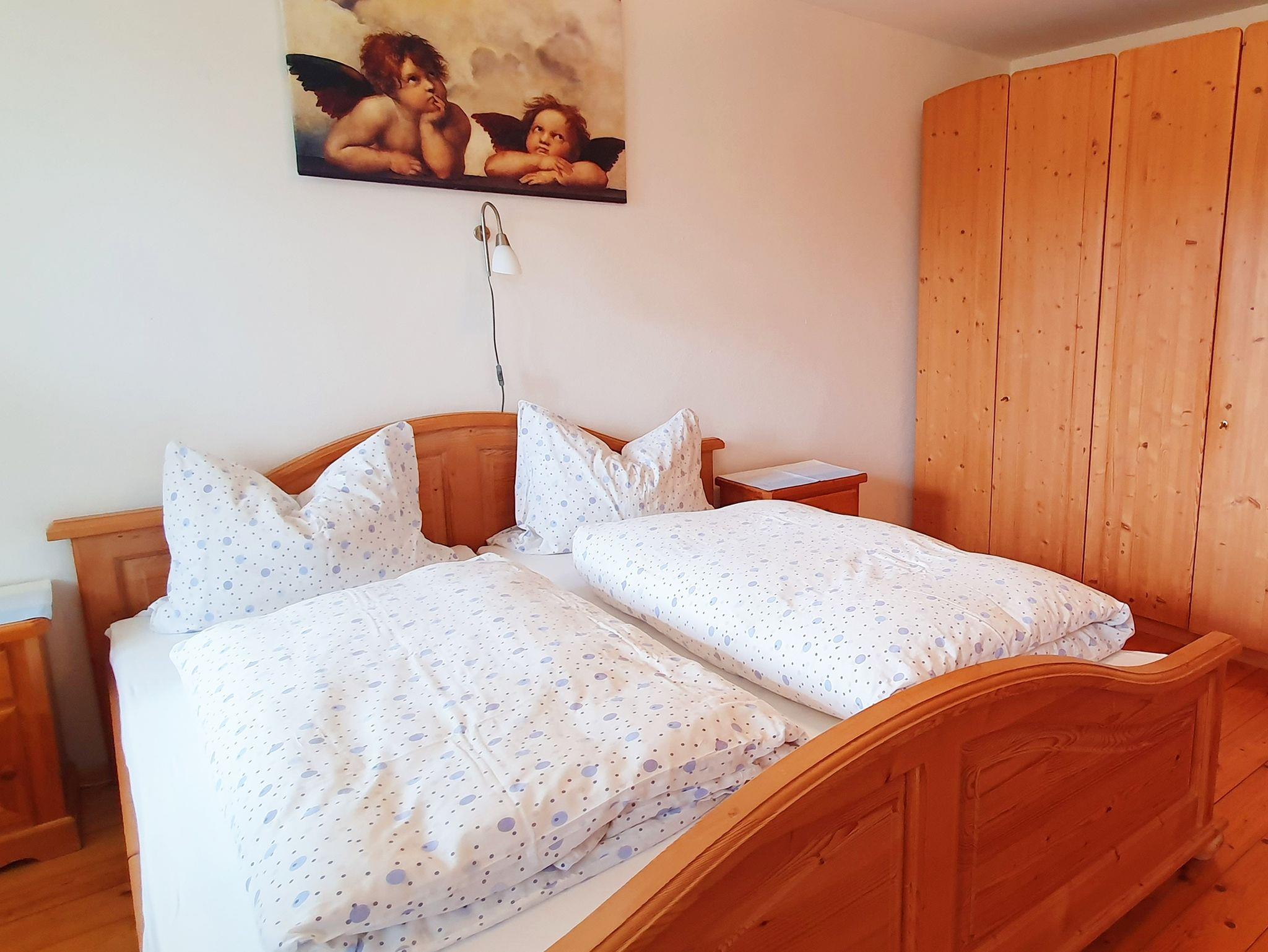 Gemütliche Wohnung im 1 Stock, 2 Schlafzimmer eines mit Doppelbett und eins mit Etagenbett, Sat-TV, Bad/Dusche, WC , Heizung, Balkon, Holz- und Fliesenböden, Nichtraucher, familienfreundlich, Naturlandbiobetrieb. Die Küche ist vollausgestattet mit Spülmaschine und Kühl-/Gefrierkombination. Für das zweite Zimmer mit Etagenbett ist eine eigene