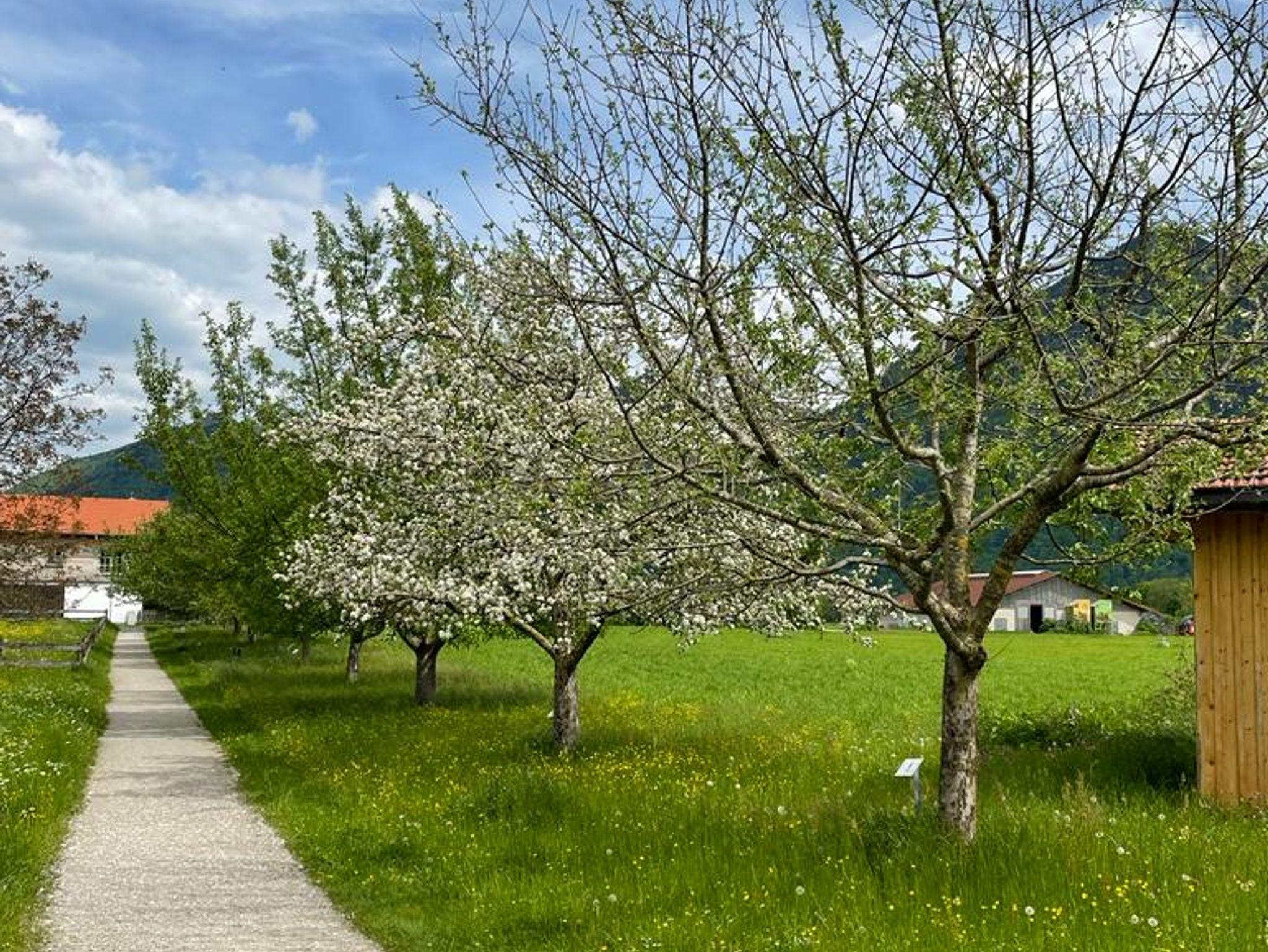 Die Ferienwohnung befindet sich in einem alten landwirtschaftlichen Anwesen, in dem ein Teil der Tenne als Ferienwohnung ganz neu ausgebaut wurde. Der Wohnungseingang sowie der Balkon befinden sich in ruhiger, hofabgewandter Westlage, an der ein kleiner Fußweg vorbeiführt, der direkt zum nahegelegenen Obstlehrpfad und Bienenschauhaus führt. Die Wohnung liegt sehr zentral in Grassau, der Badesee ist in nur 5 Gehminuten zu erreichen, ebenso wie die Ortsmitte.